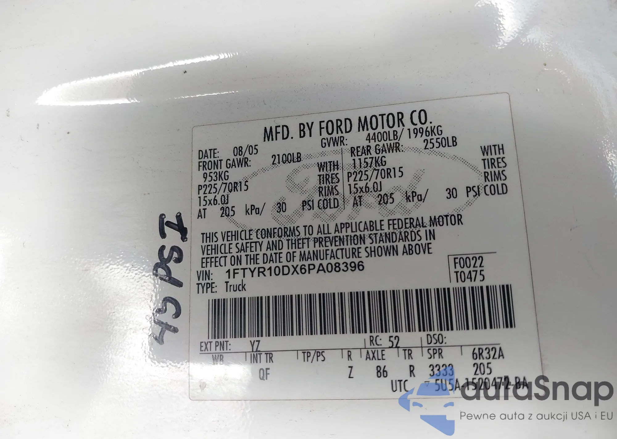 • VIN 1FTYR10DX6PA08396