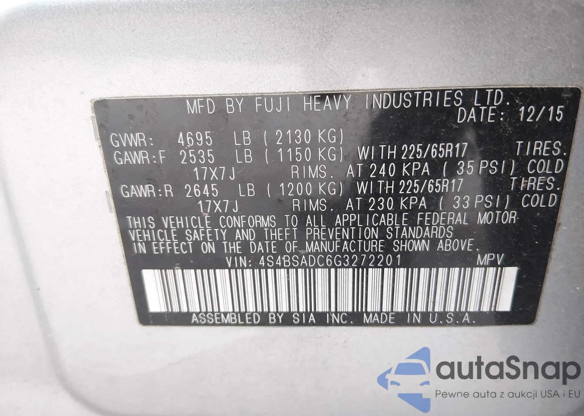 LOT: 43807173 VIN: 4S4BSADC6G3272201