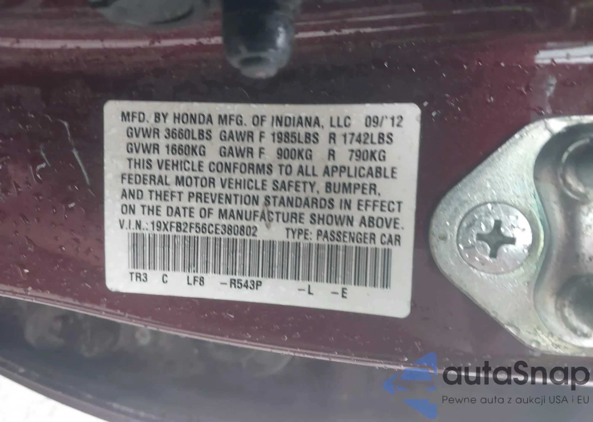 LOT: 43838767 VIN: 19XFB2F74FE268683