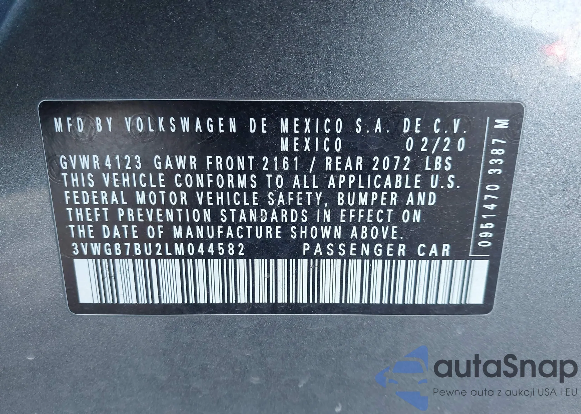 • VIN 3VWGB7BU2LM044582