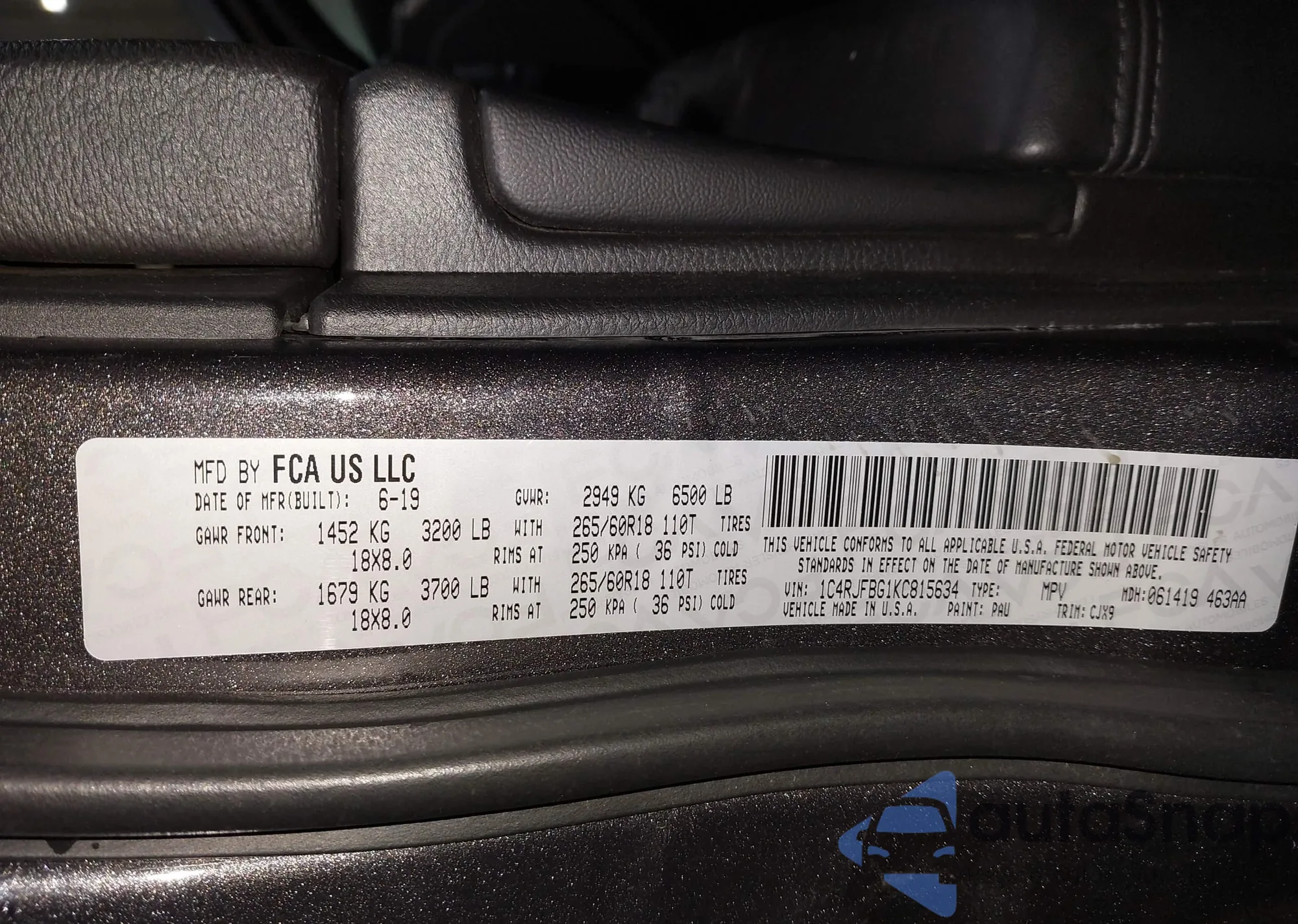 • VIN 1C4RJHDG4PC579786