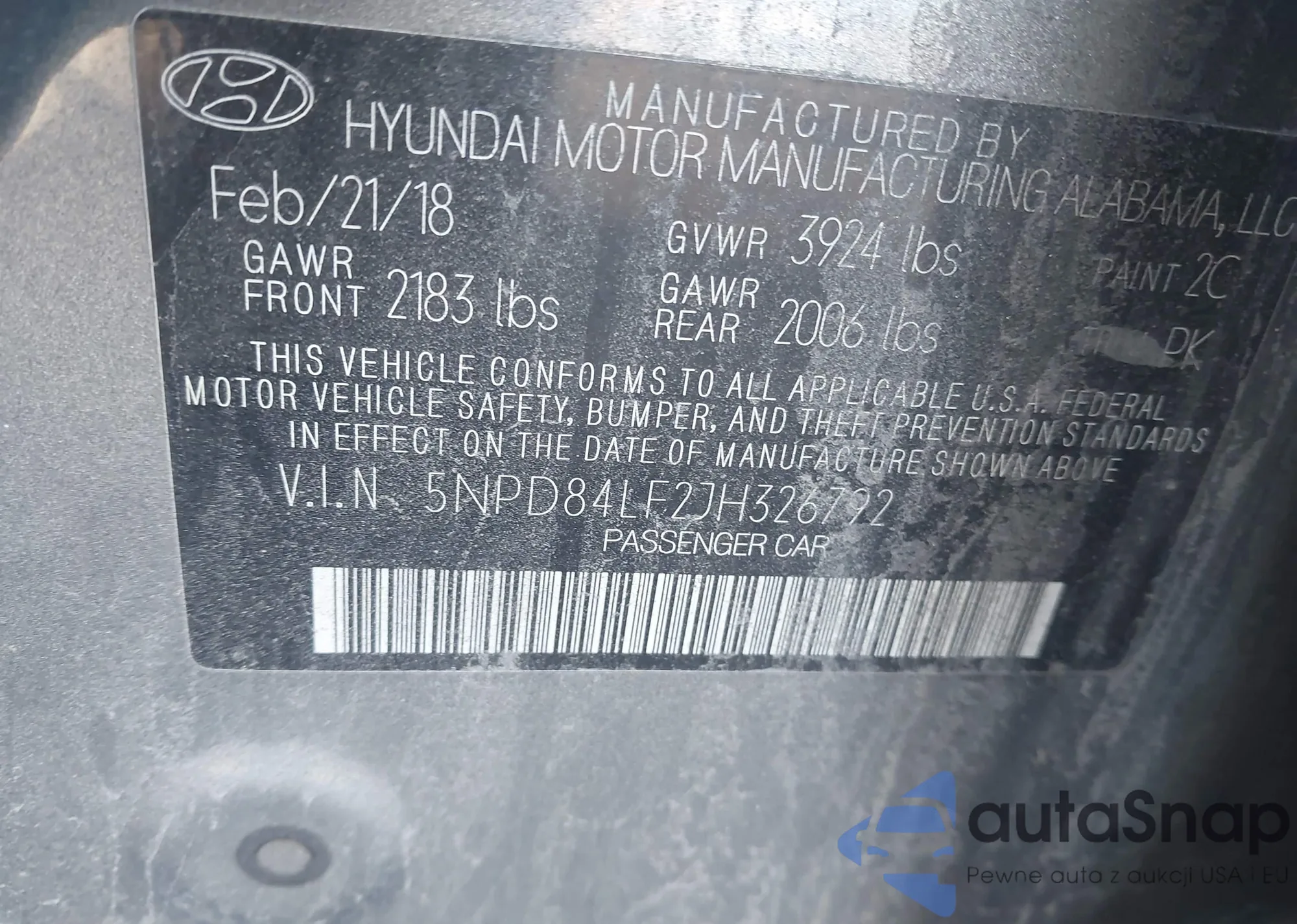 • VIN 5NPEB4AC4BH026512