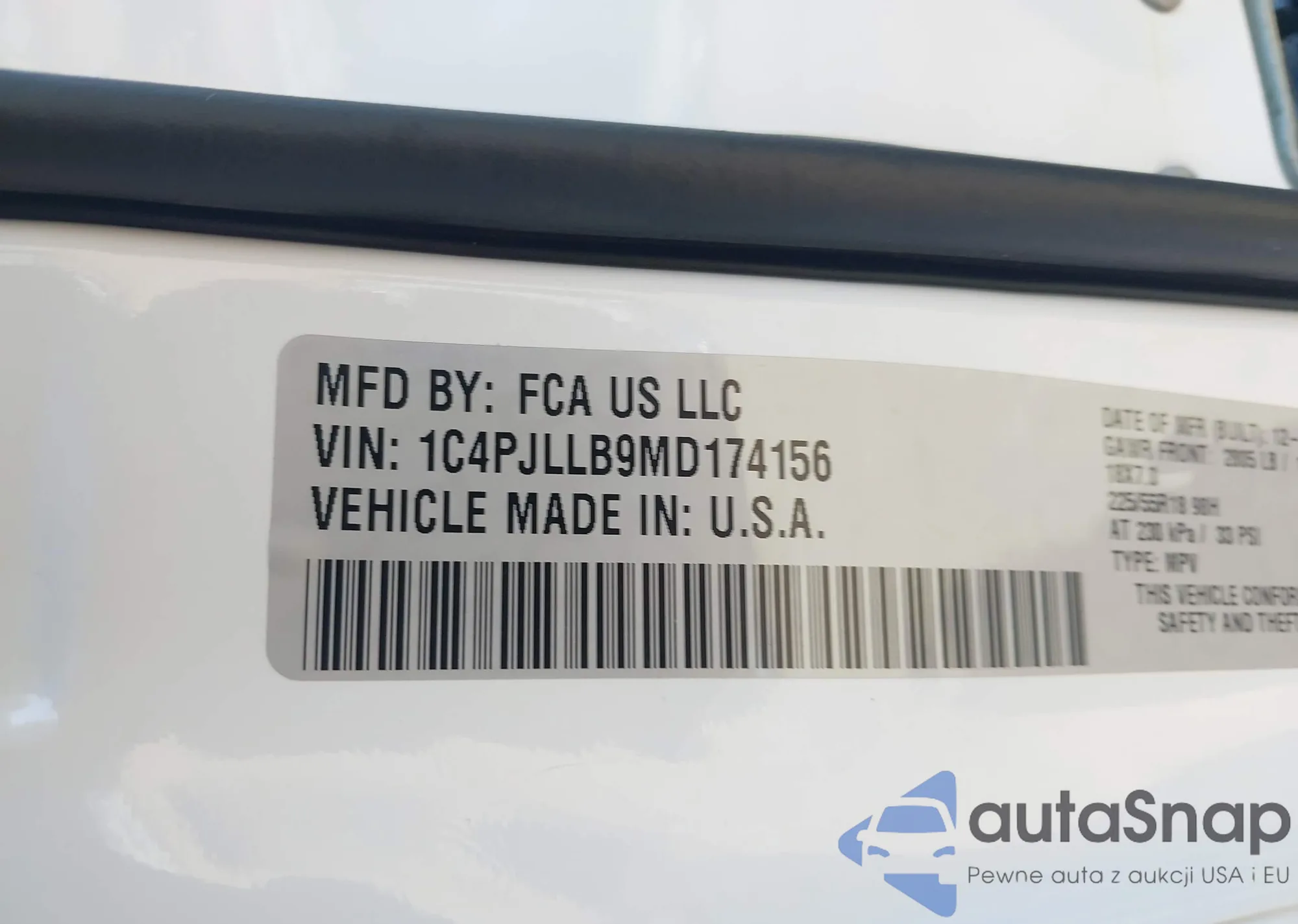 • VIN 1C4PJLLB9MD174156