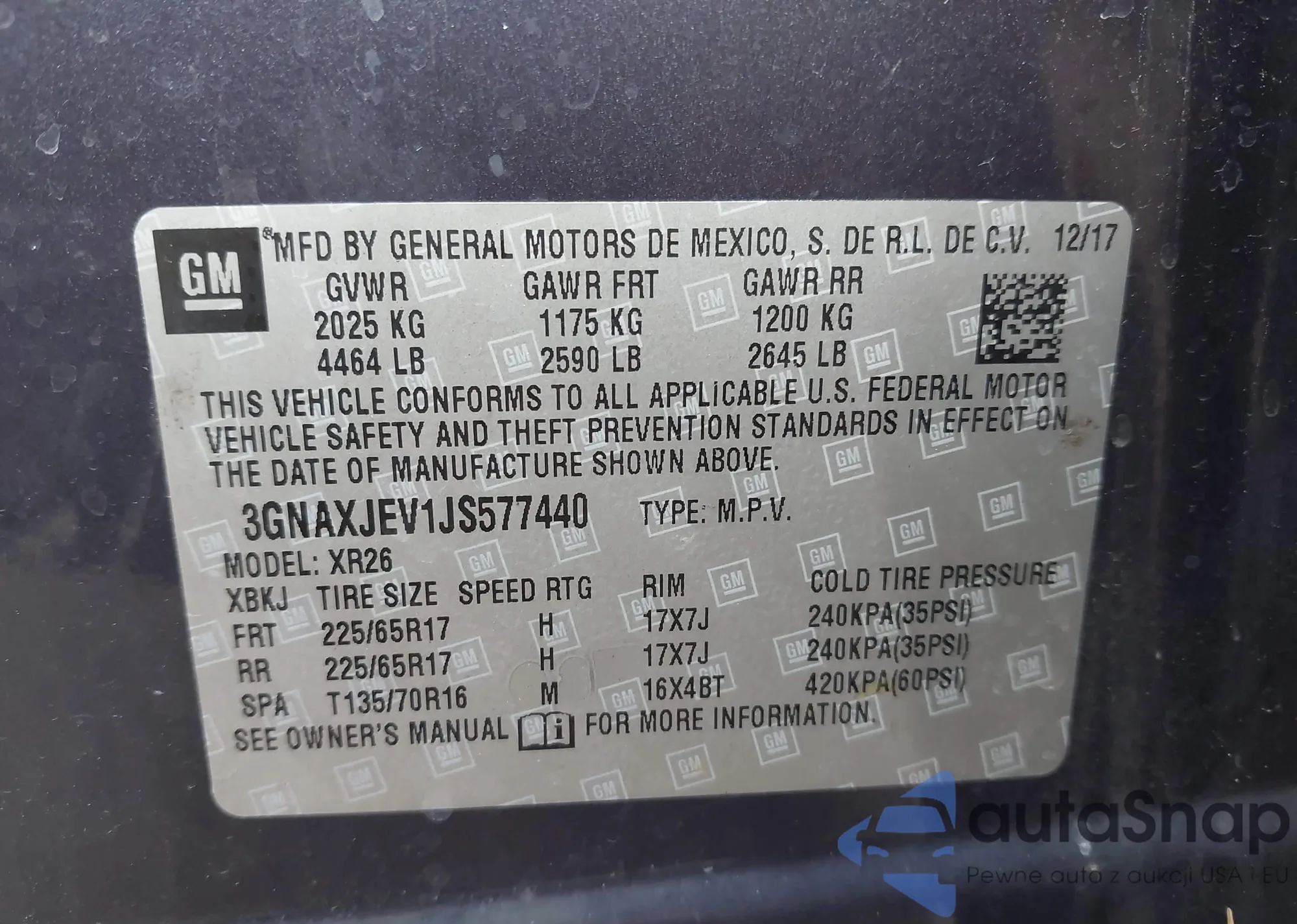 • VIN 3GNAXJEV1JS577440