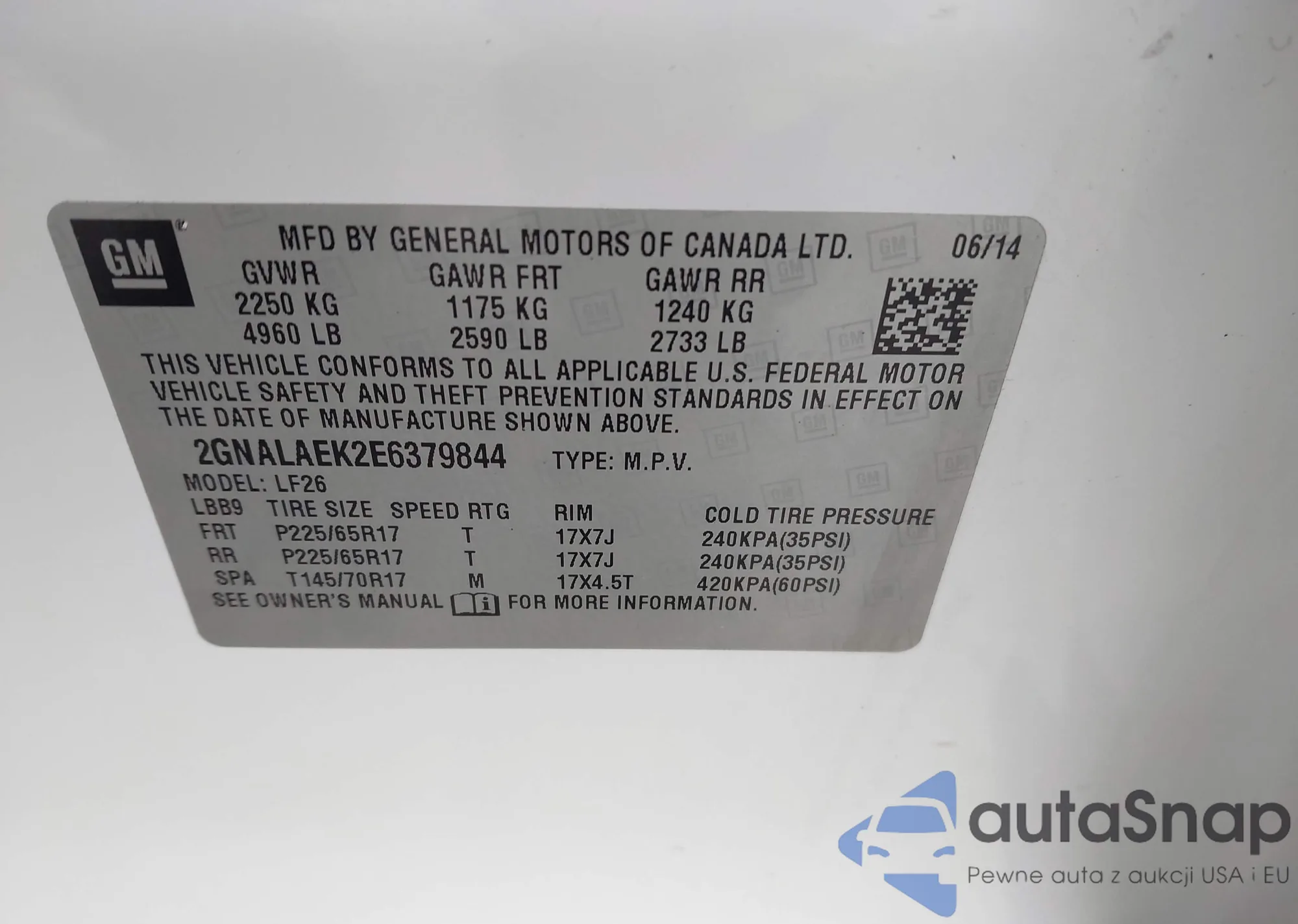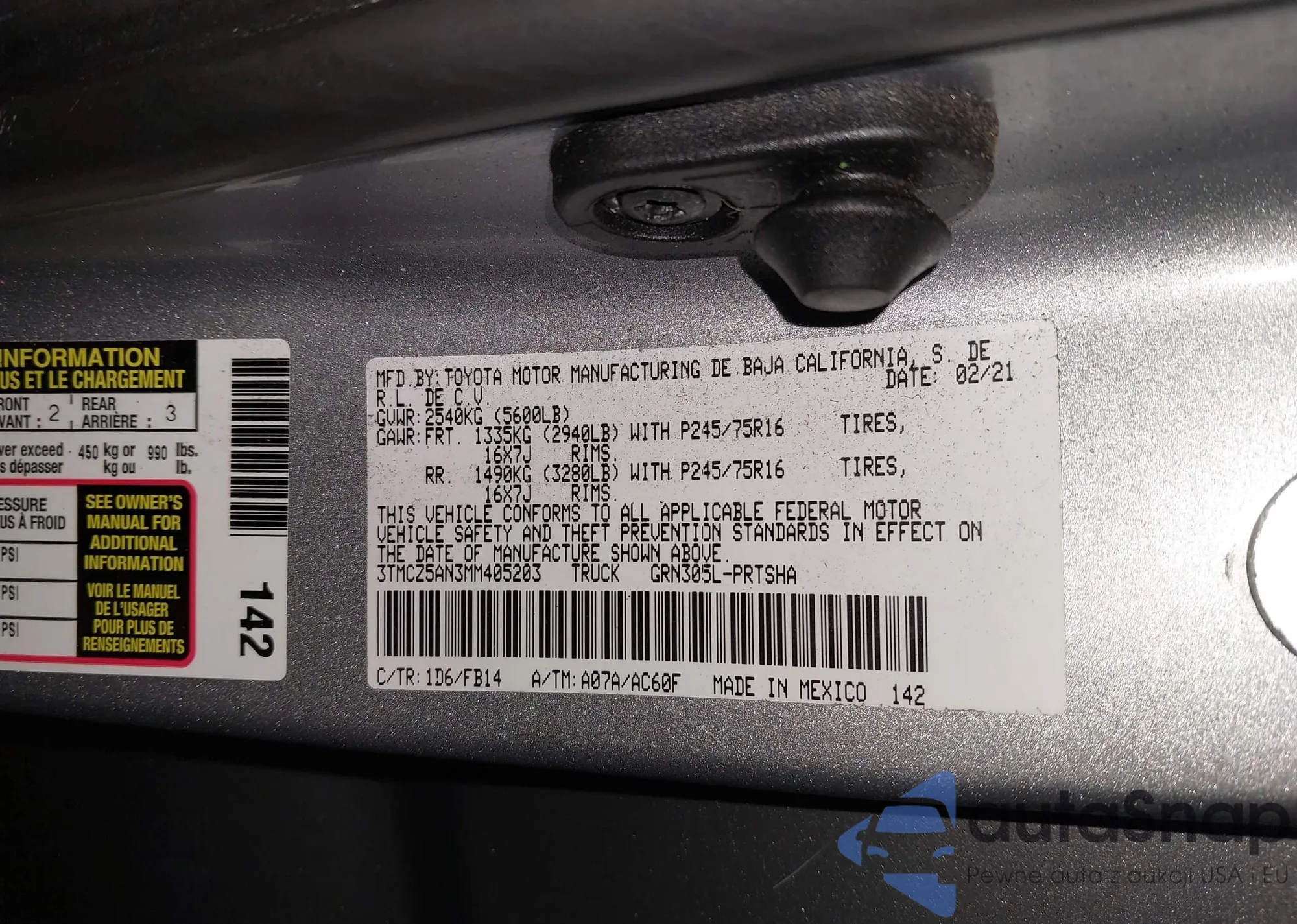 • VIN KL79MRSL3PB110558