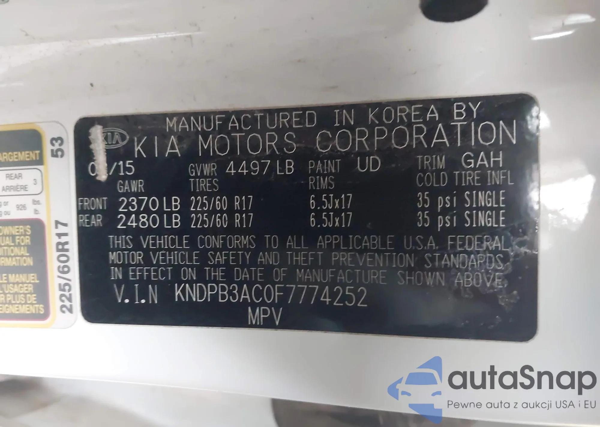 • VIN KNAFX4A62F5427267