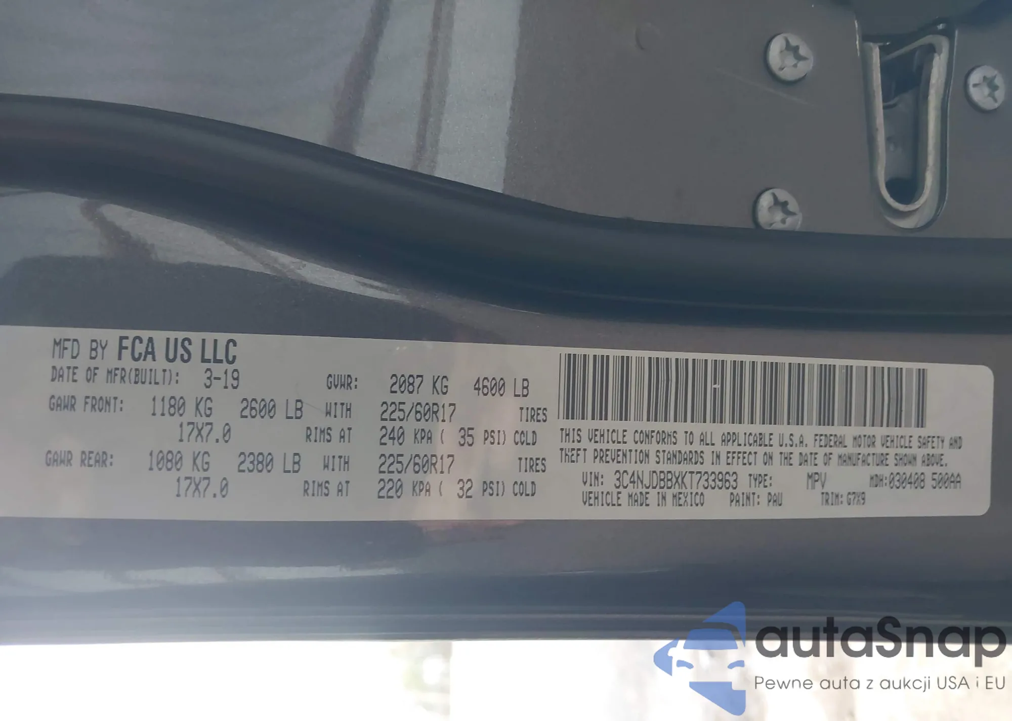 LOT: 43755925 VIN: 3C6TRVDG0KE526749