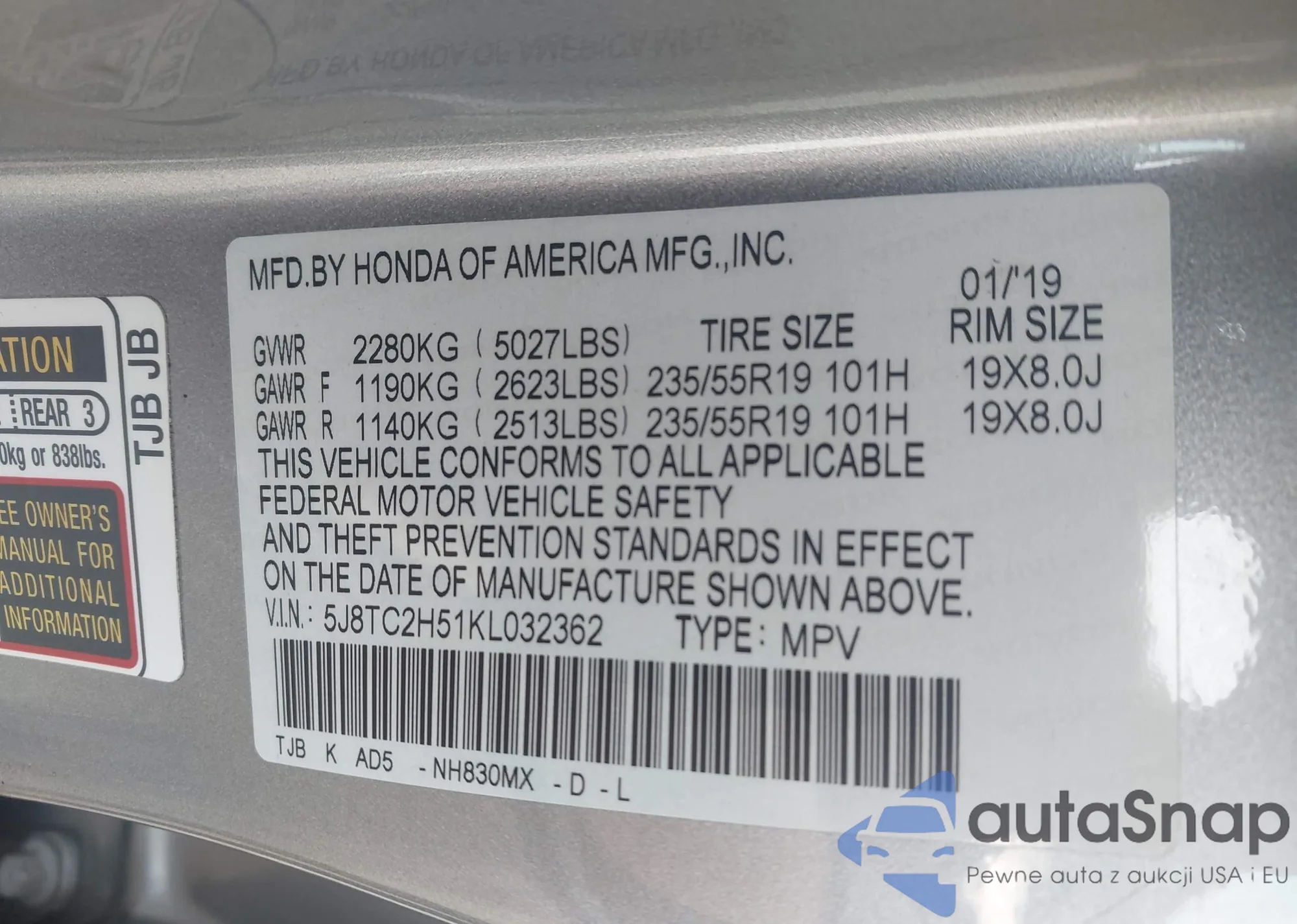 LOT: 43282683 VIN: 3VV3B7AX6KM046364