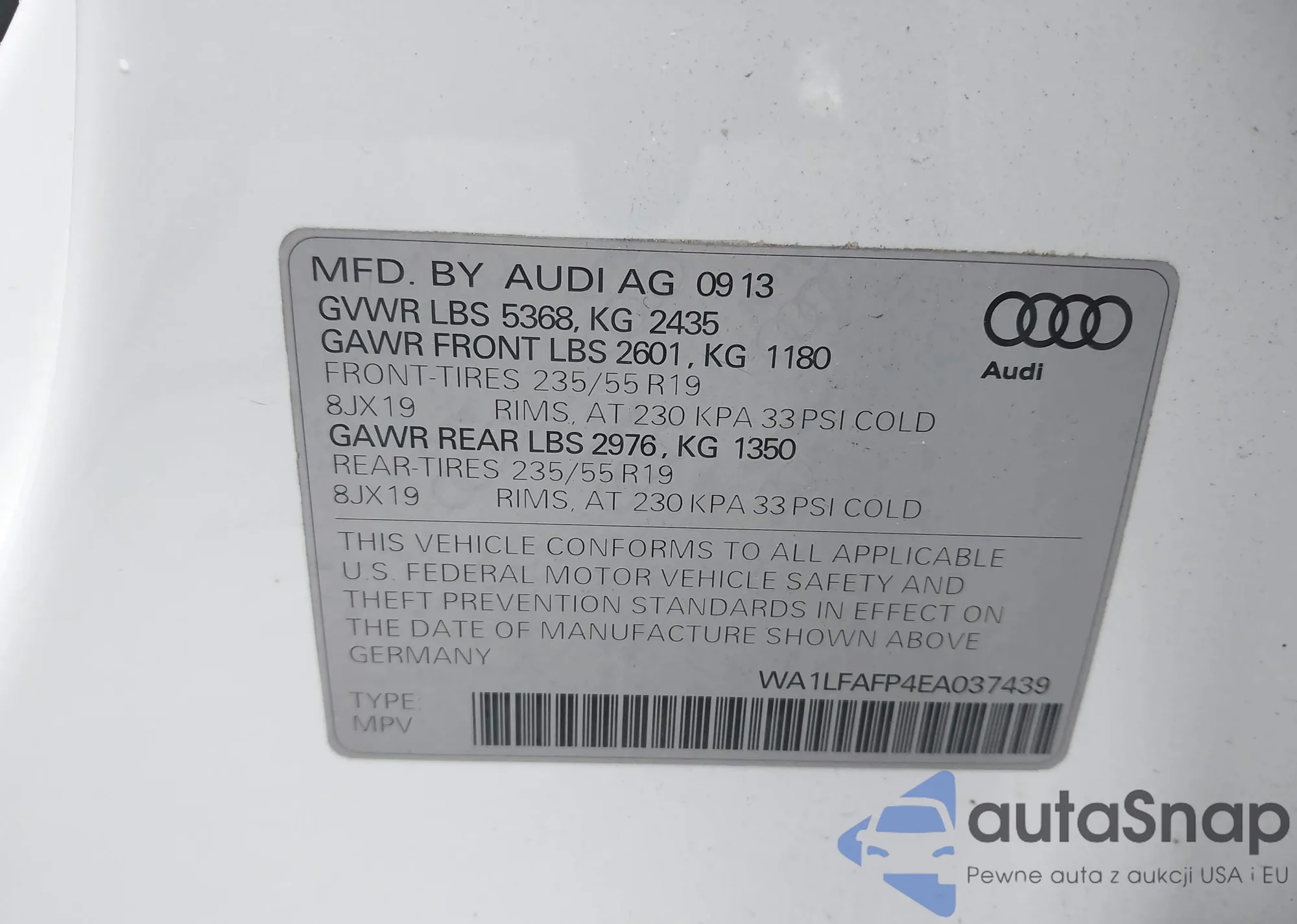 LOT: 43718822 VIN: WA1LFAFP4EA037439