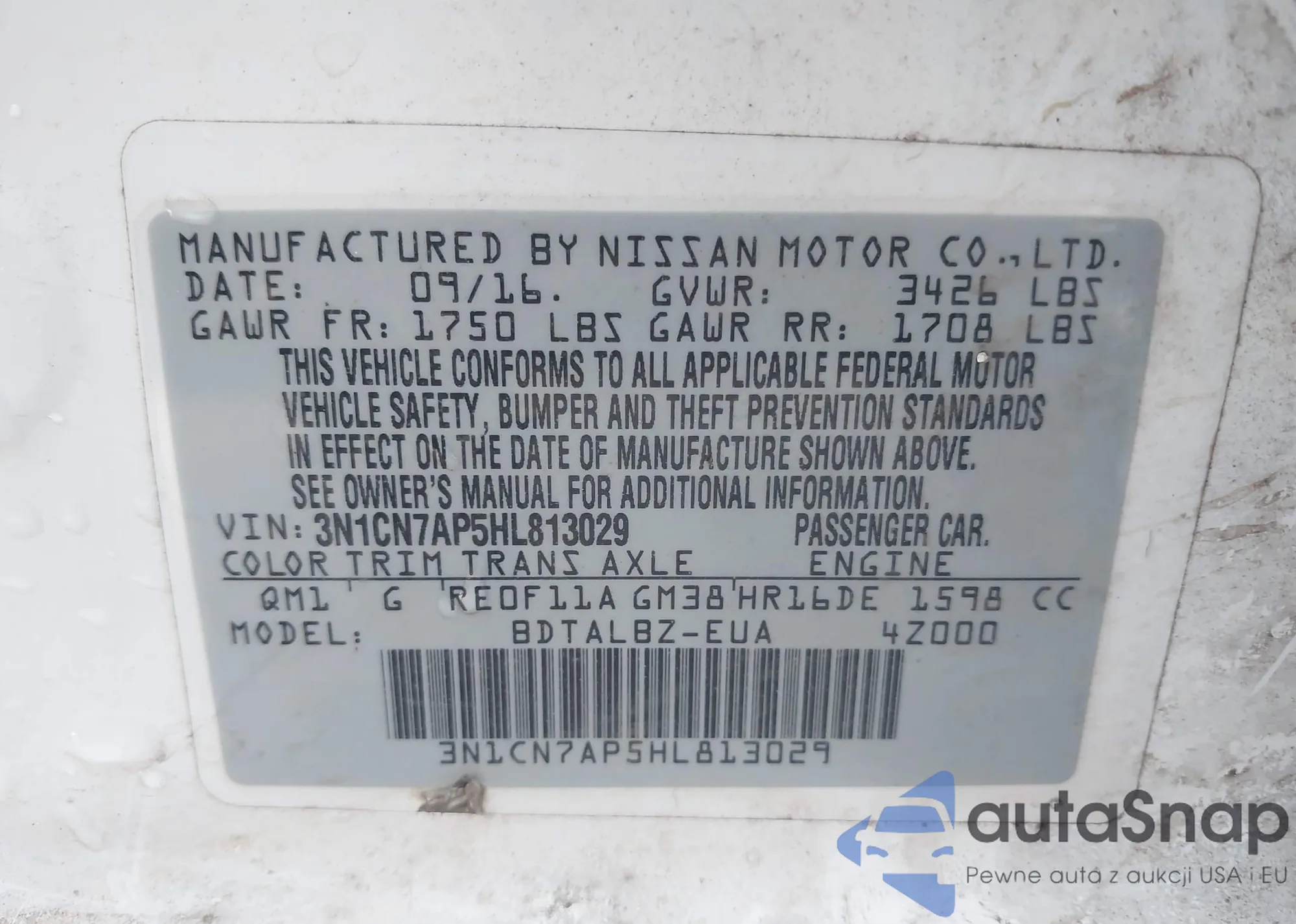 • VIN 3N1CN8EV5ML818420