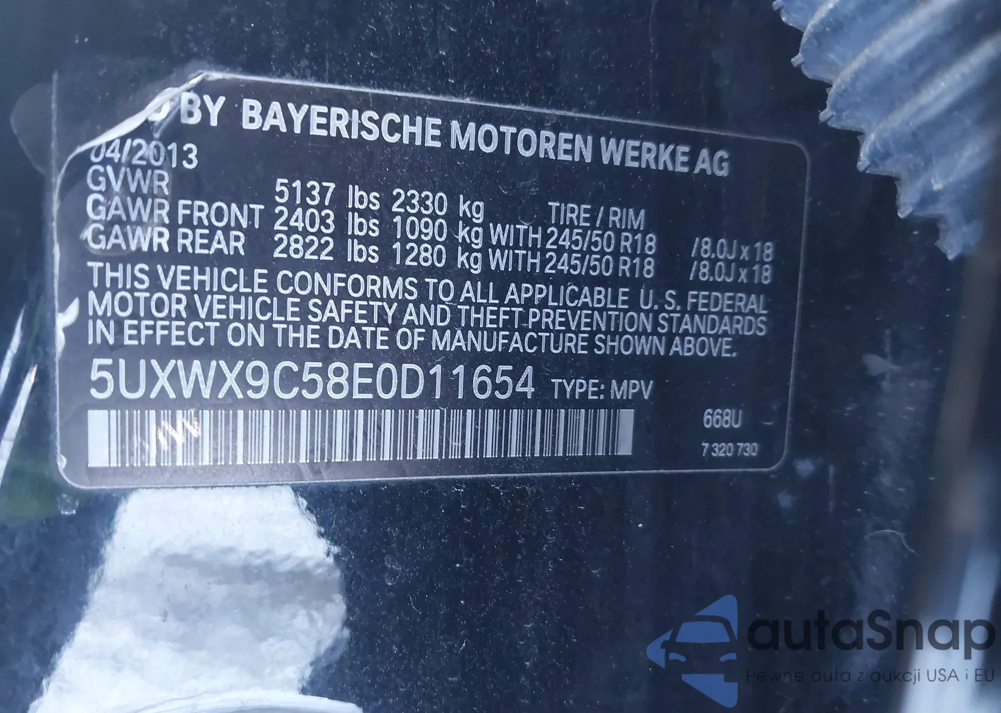 • VIN 5UXWX9C53D0A26925