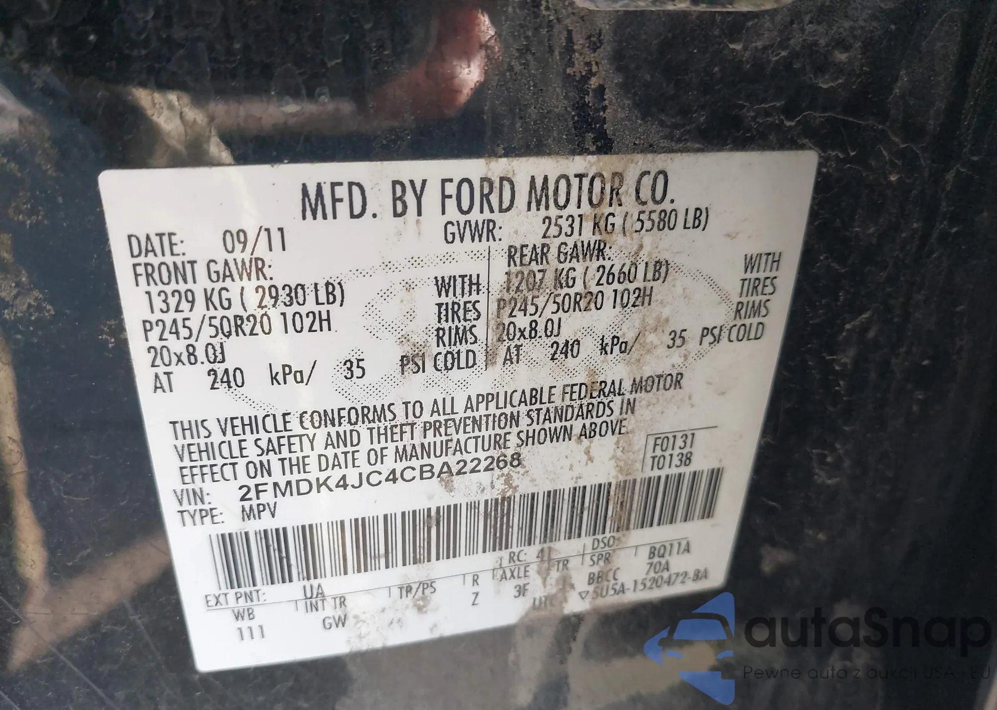 • VIN 1FMCU0D73CKA11006