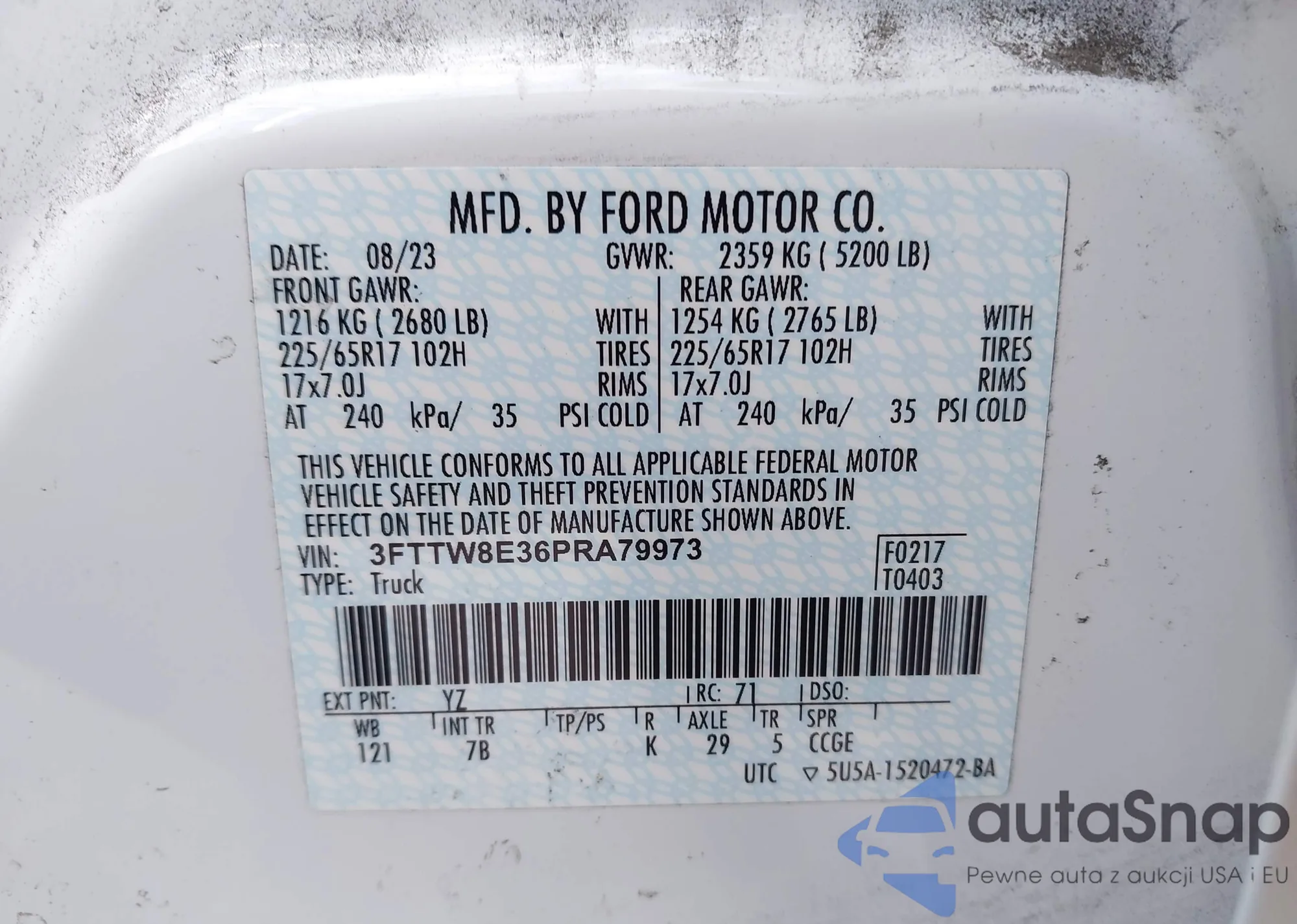LOT: 43812261 VIN: 3FTTW8E36PRA79973