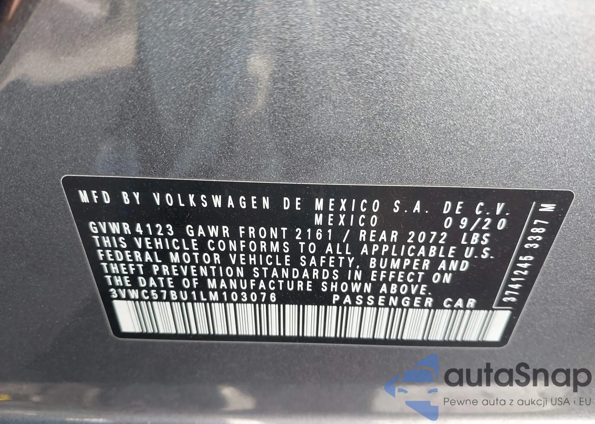 • VIN 3VWC57BU1LM103076
