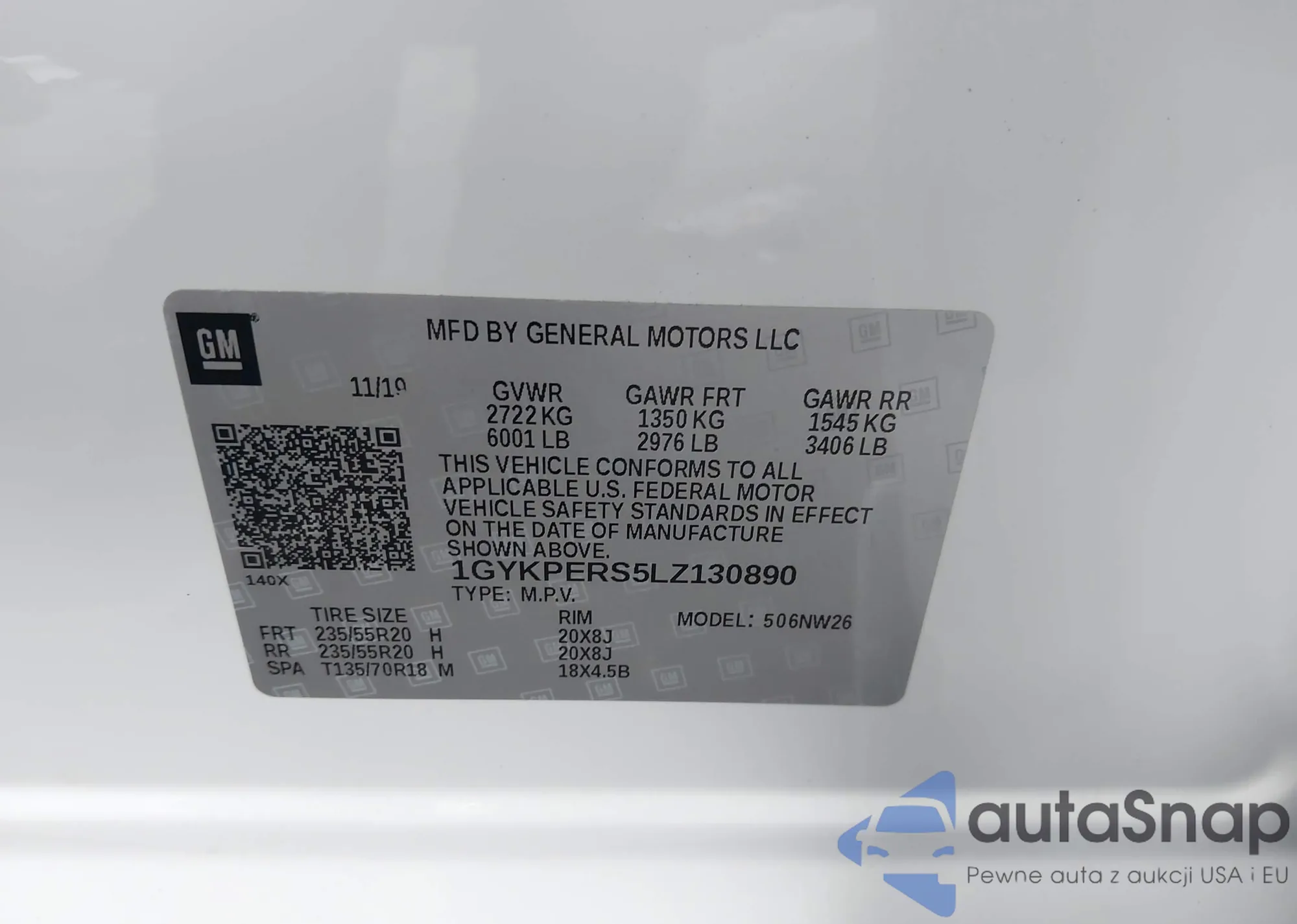 LOT: 43428316 VIN: 1GYKPERS5LZ130890
