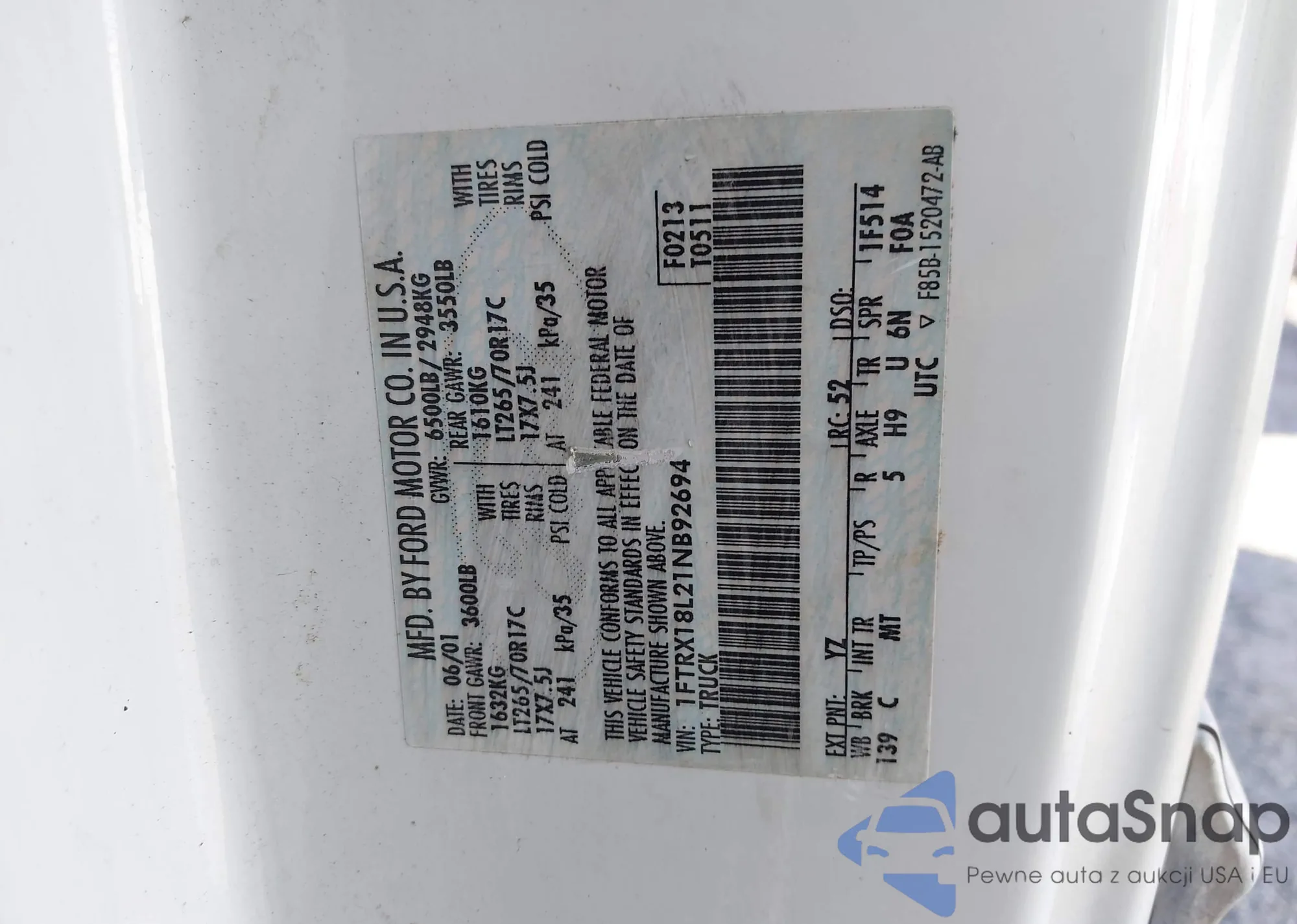 LOT: 43405244 VIN: 1FTEW1EG5JFA67112