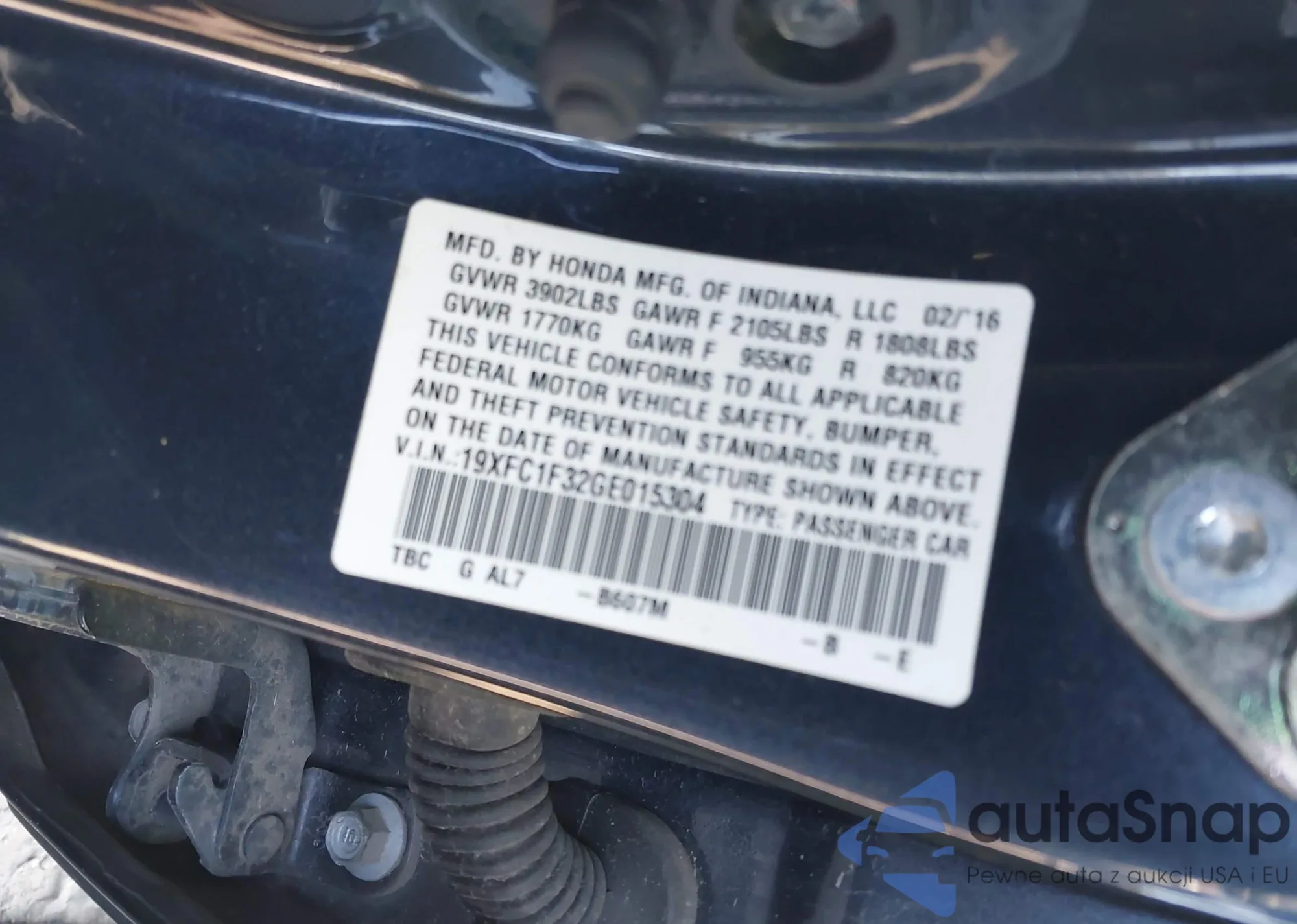 LOT: 43628631 VIN: 19XFL1H7XPE003126