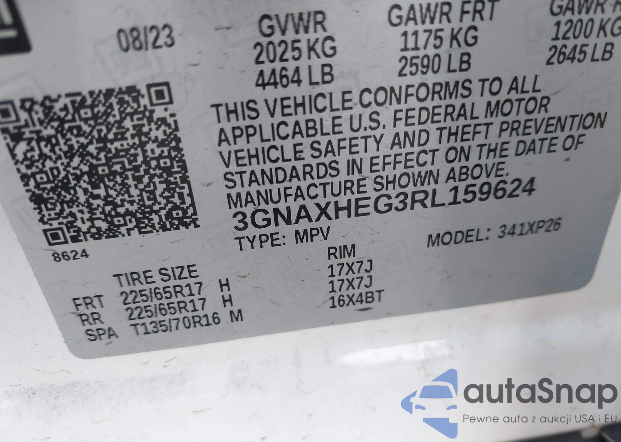 LOT: 43302007 VIN: 3GNAXHEG3RL159624