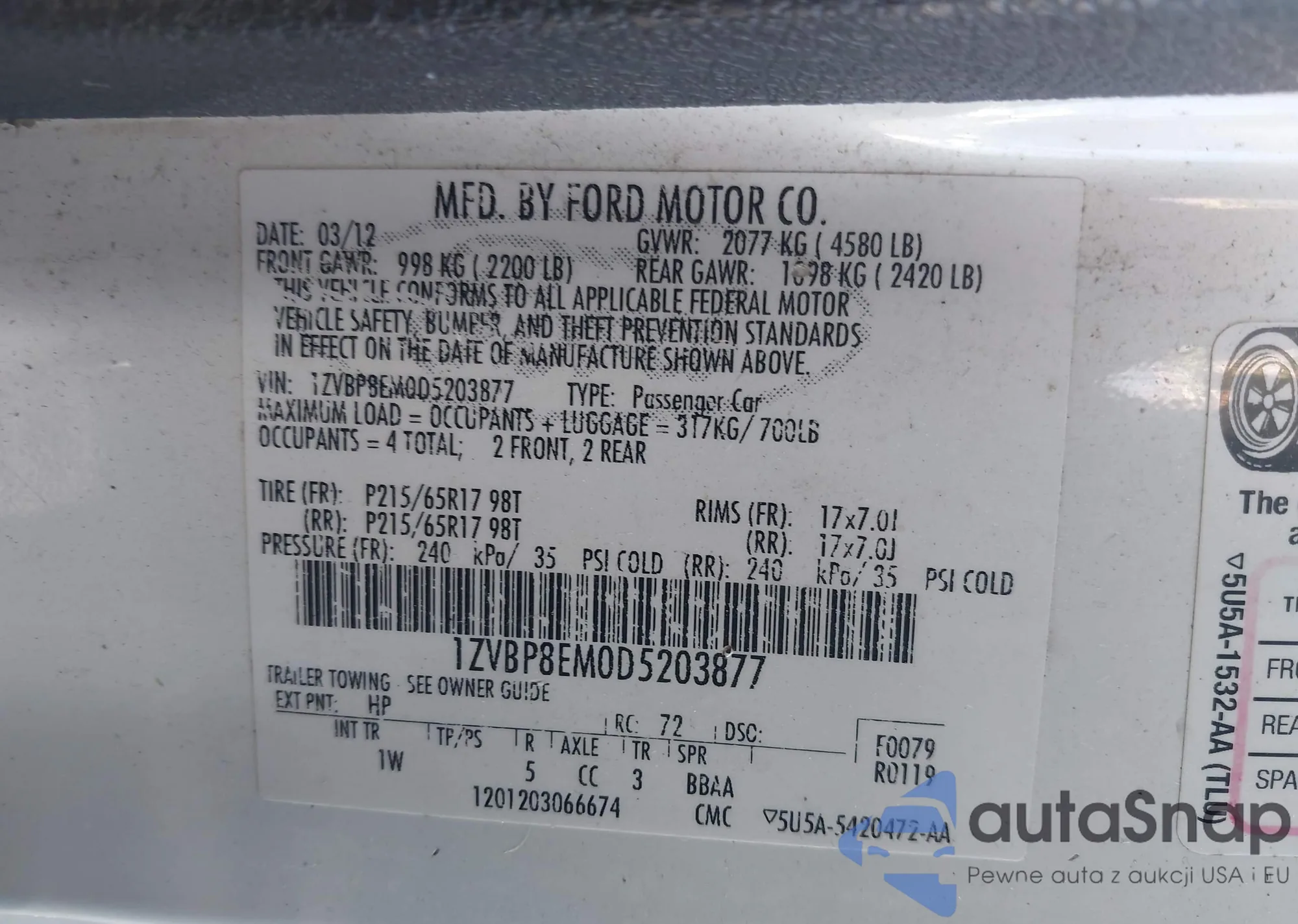 • VIN 1ZVBP8EM0D5203877