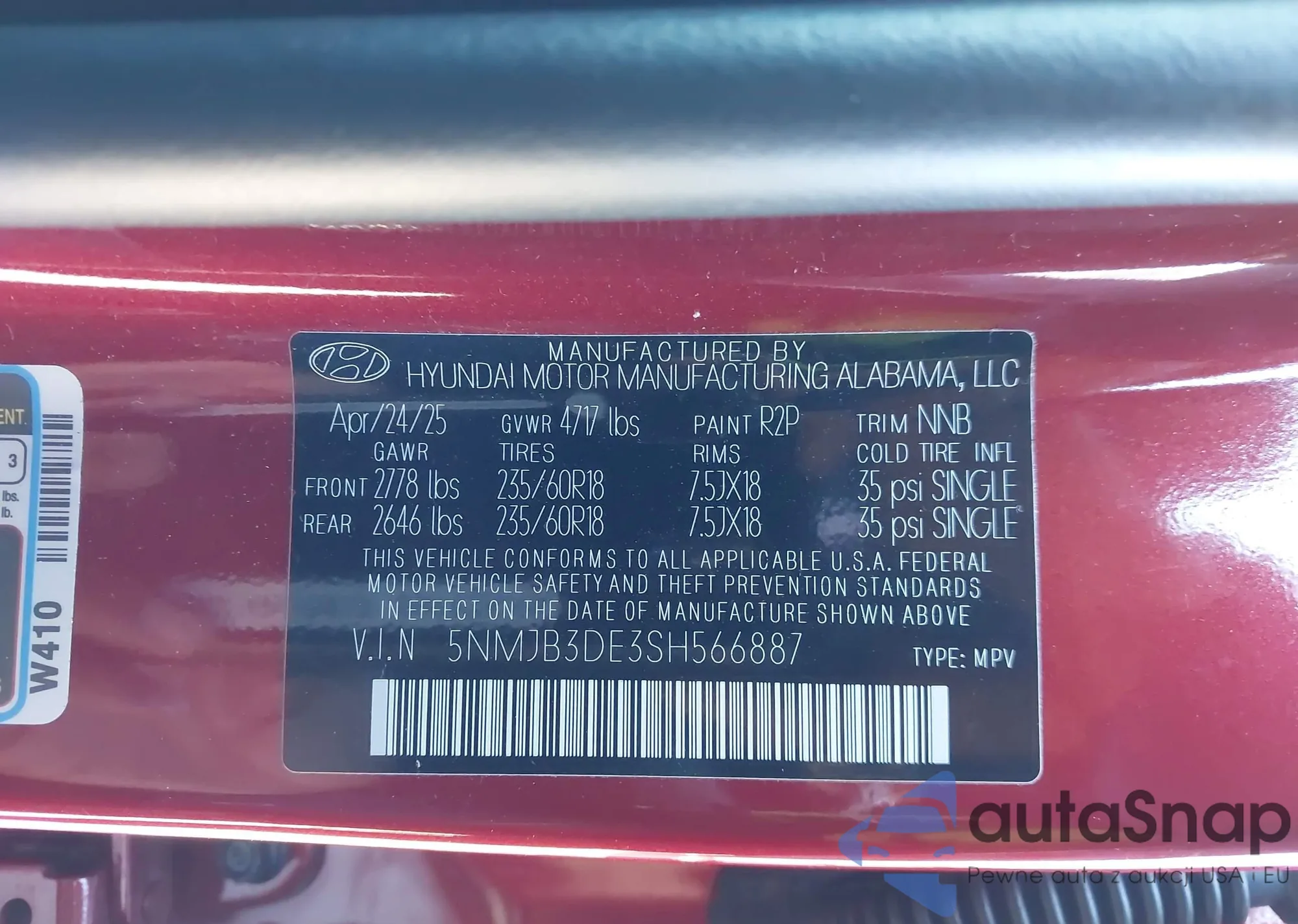 • VIN 5XYPGDA59JG376557