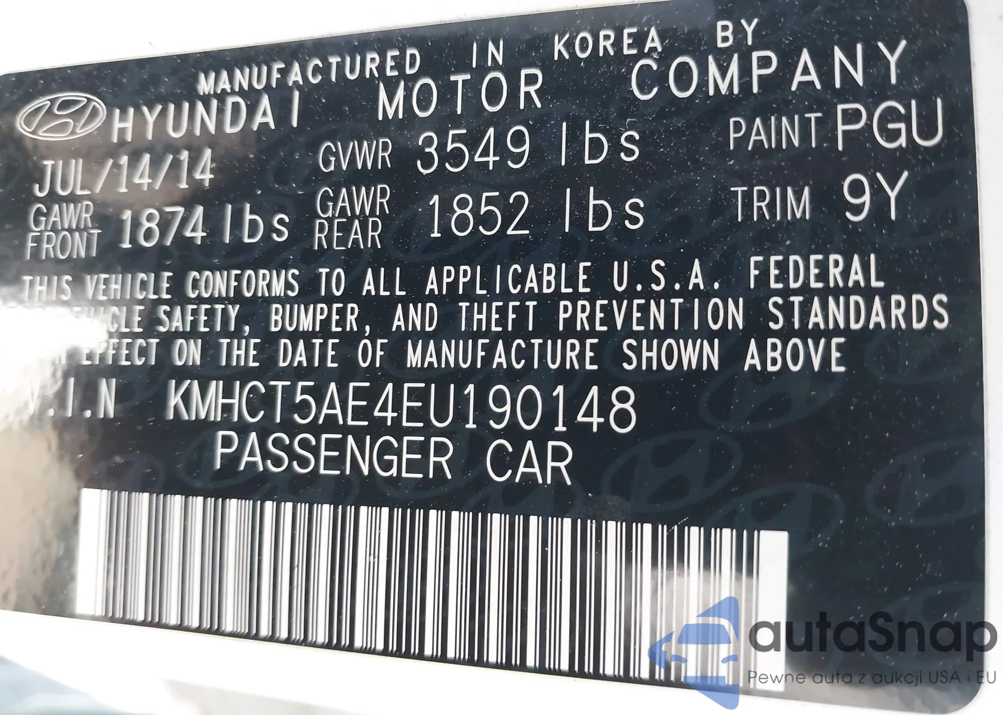 LOT: 42857637 VIN: 1GCVKPEH8EZ302372