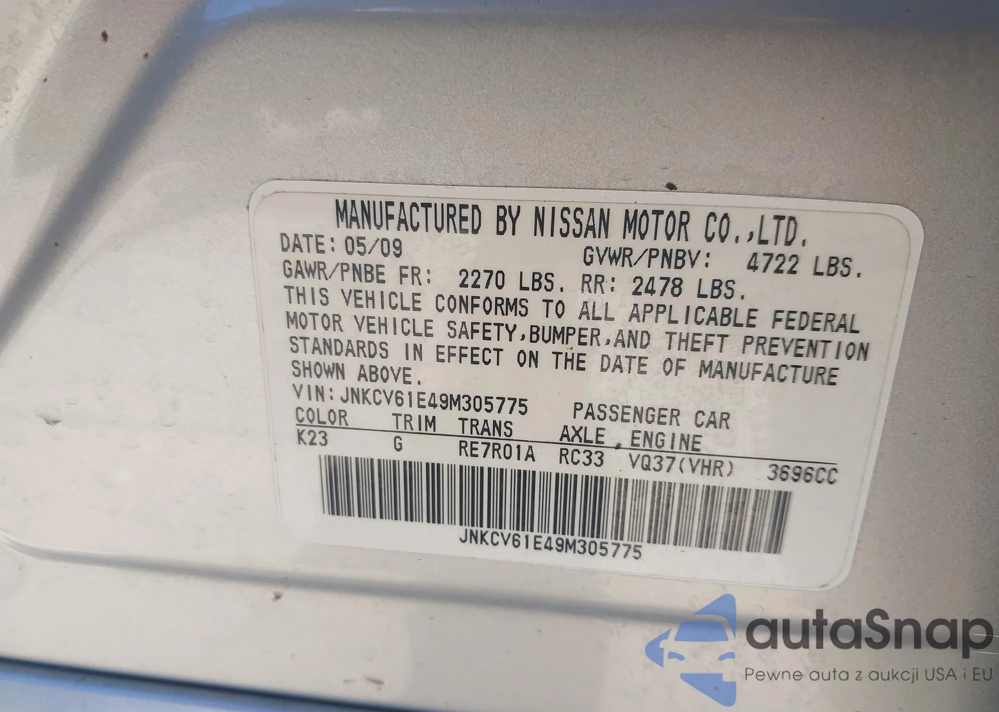 • VIN JNKCV61E49M305775