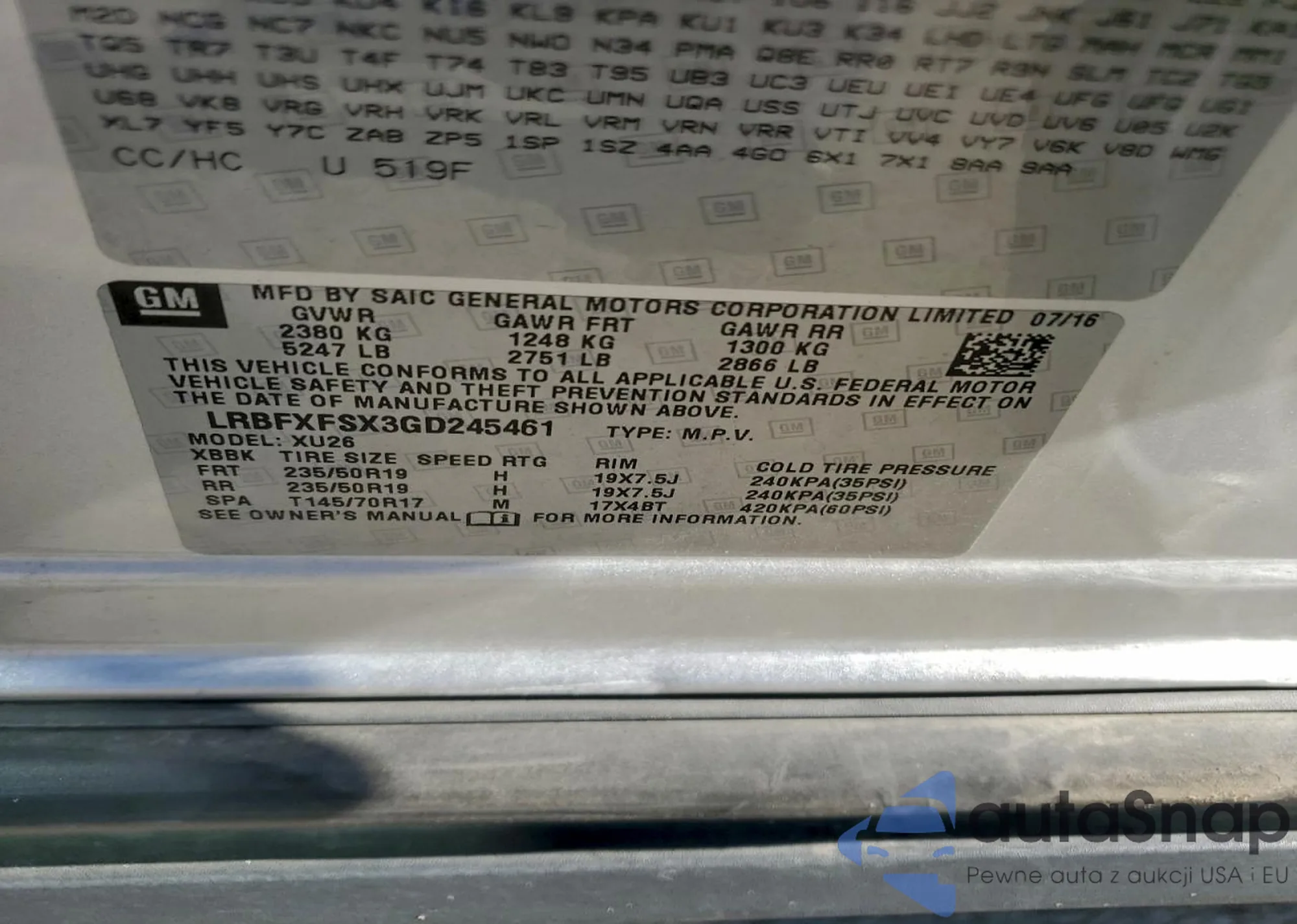 LOT: 94485865 VIN: LRBFXFSX3GD245461