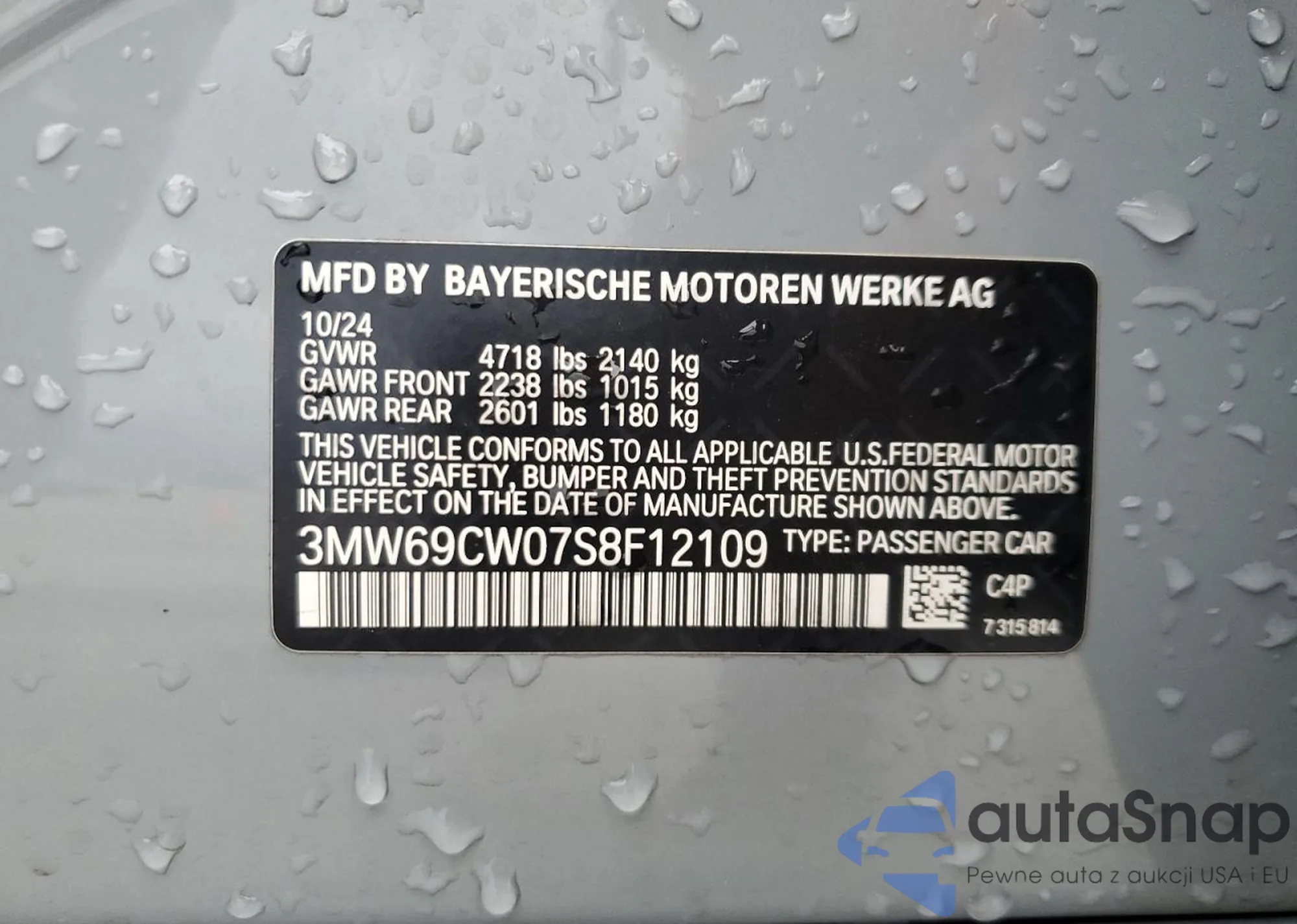 LOT: 91846175 VIN: 3MW69CW07S8F12109
