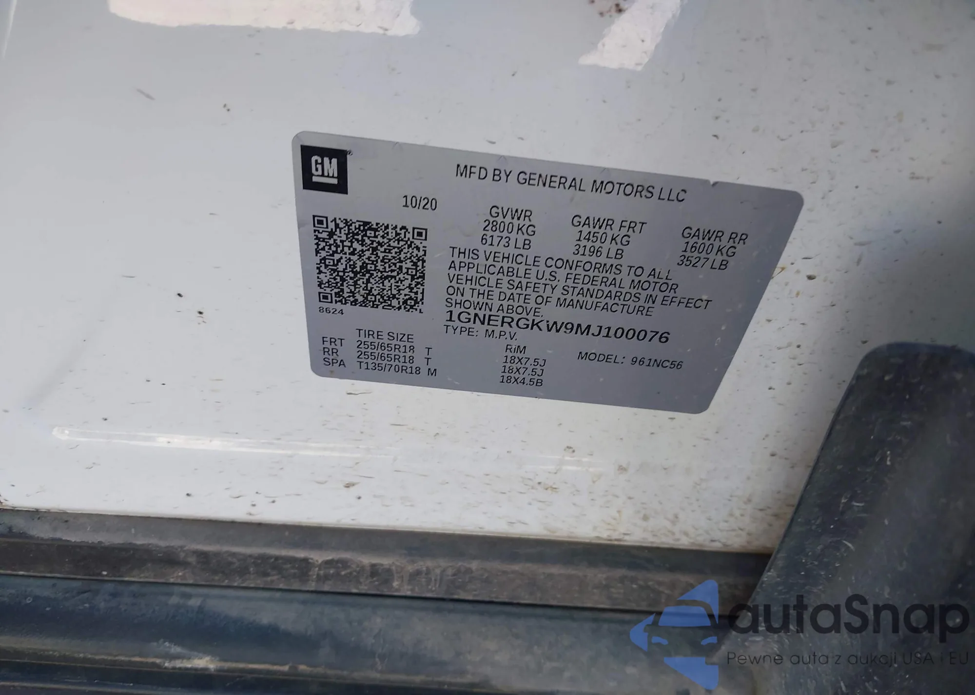 LOT: 43661068 VIN: 1GNERGKW9MJ100076
