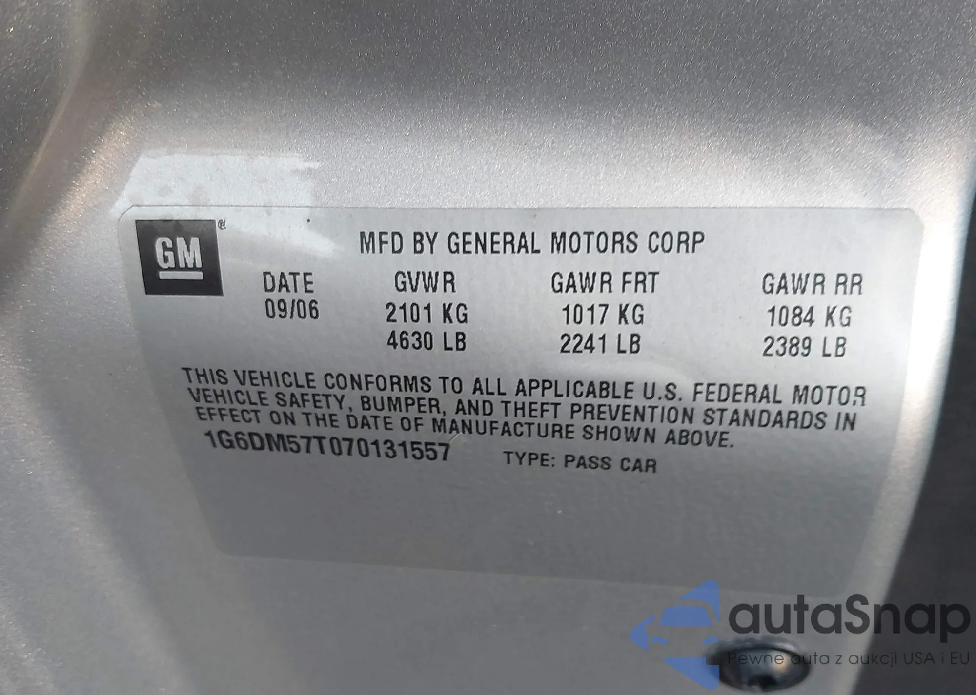 LOT: 43581446 VIN: 1G6DM57T070131557