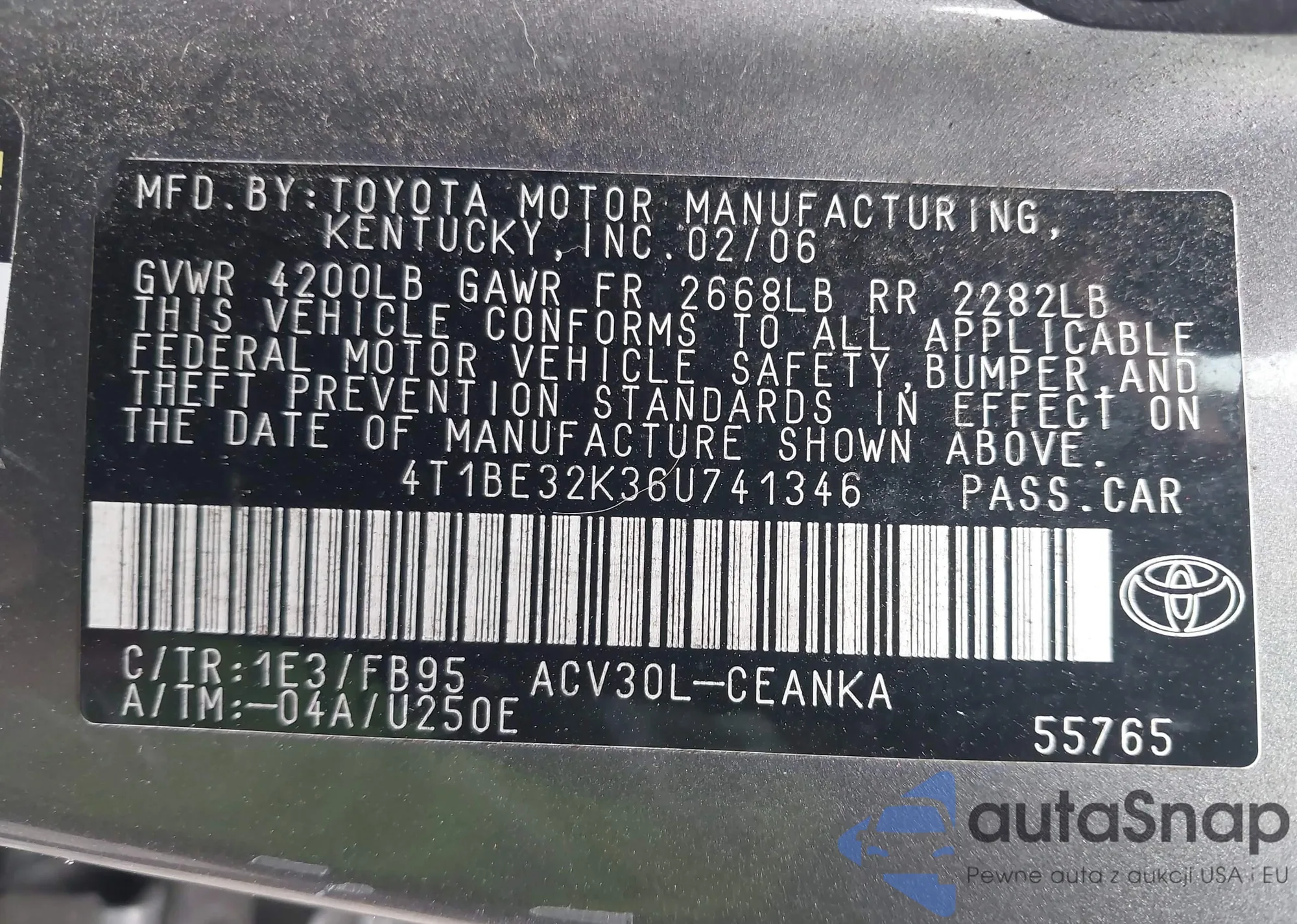 • VIN 4T1BE32K36U741346