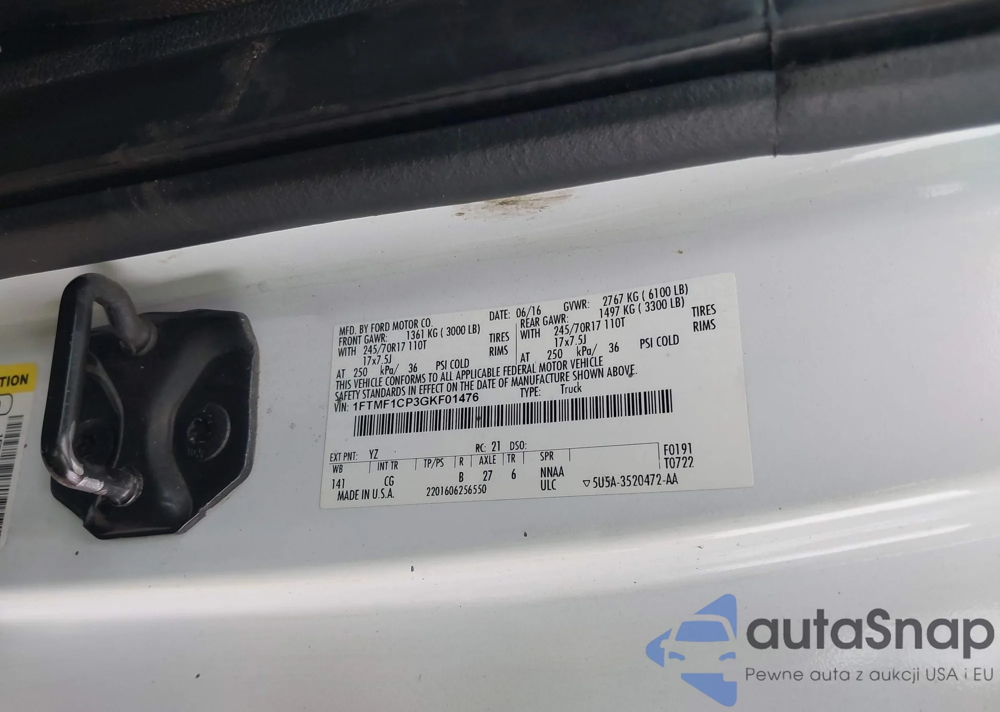 2016 Ford F-150 Xl z USA, uszkodzony, nr VIN 1FTMF1CP3GKF01476