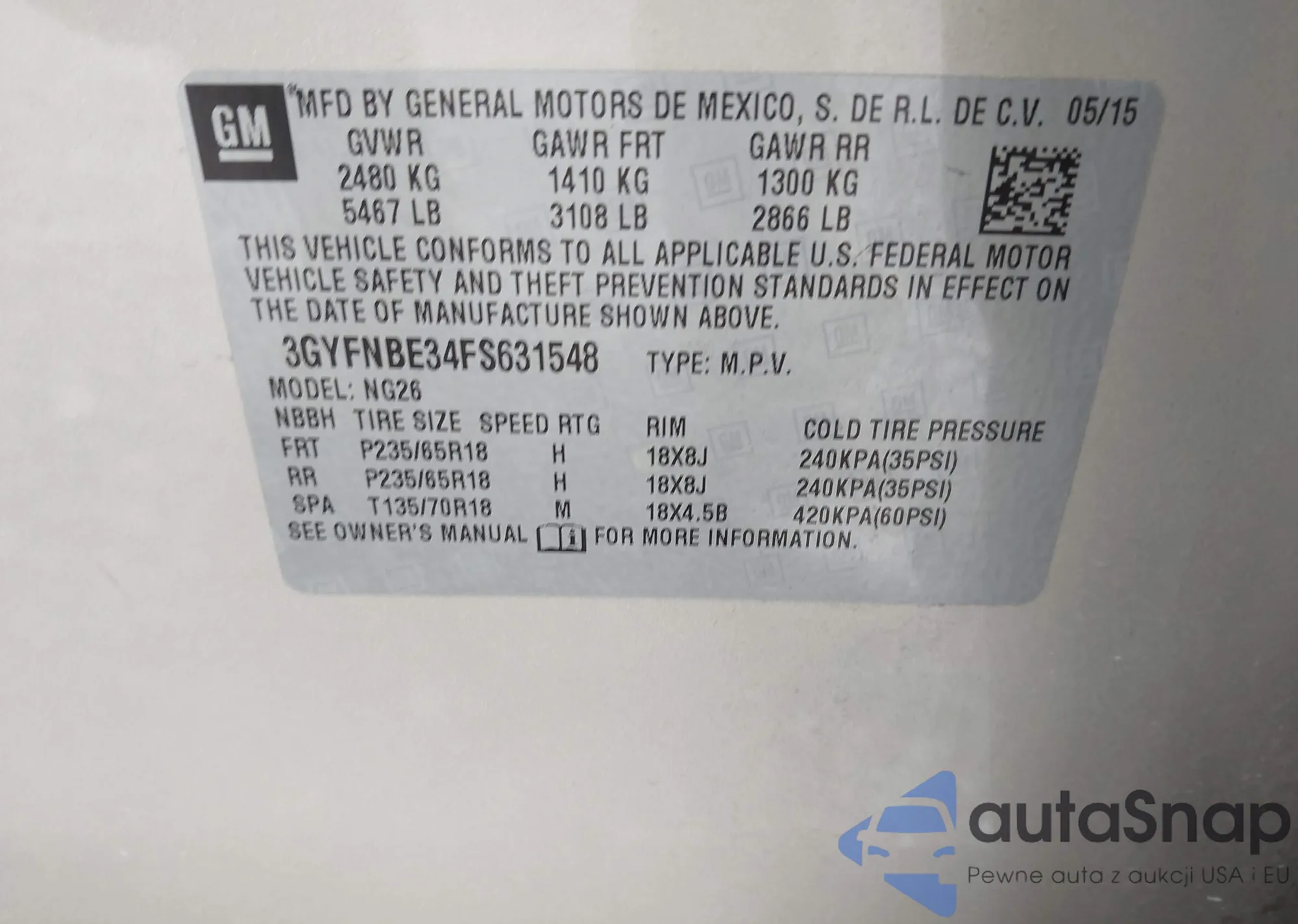 LOT: 43825658 VIN: 3GYFNBE34FS631548