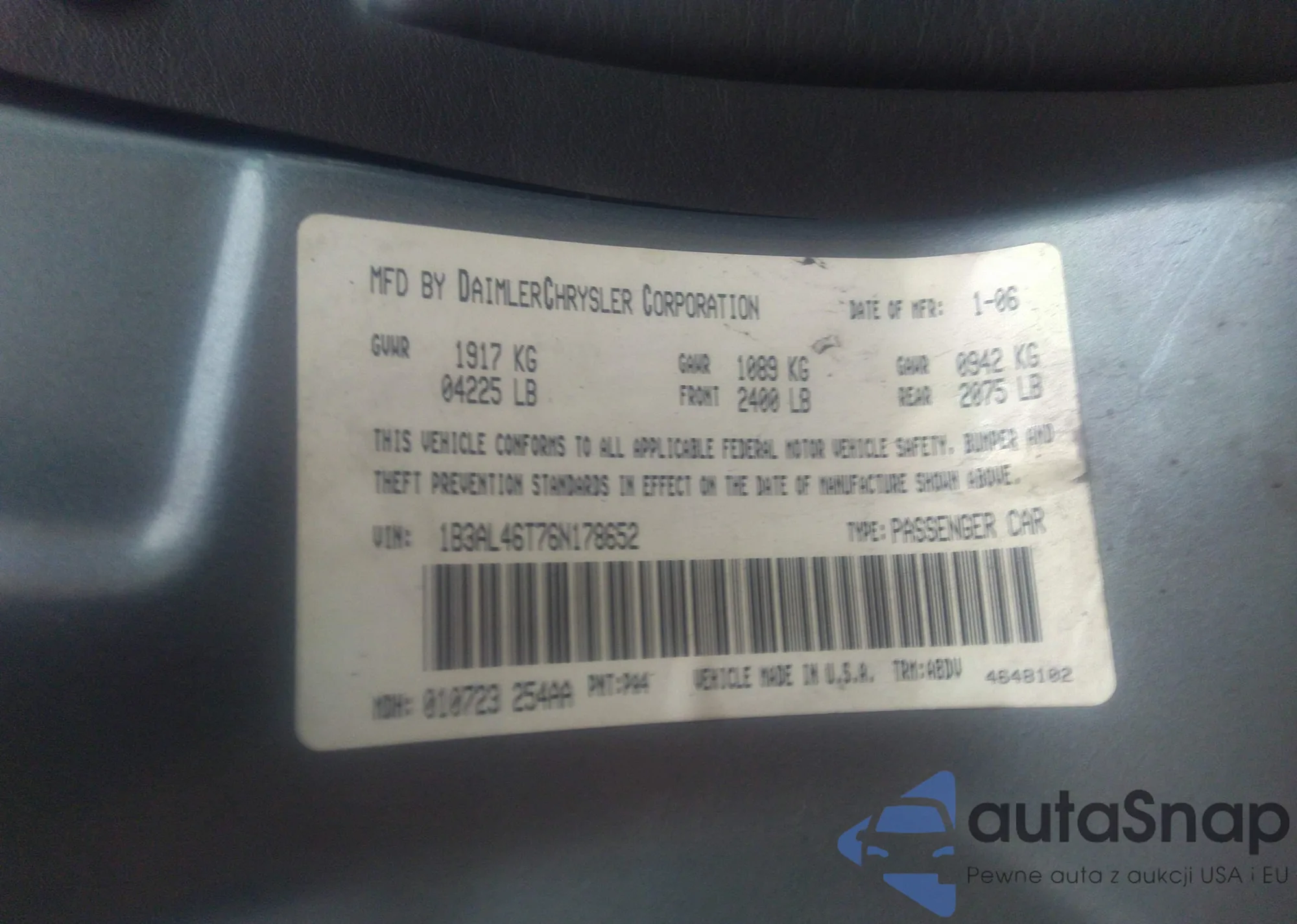 LOT: 35351094 VIN: 1B3AL46T76N178652