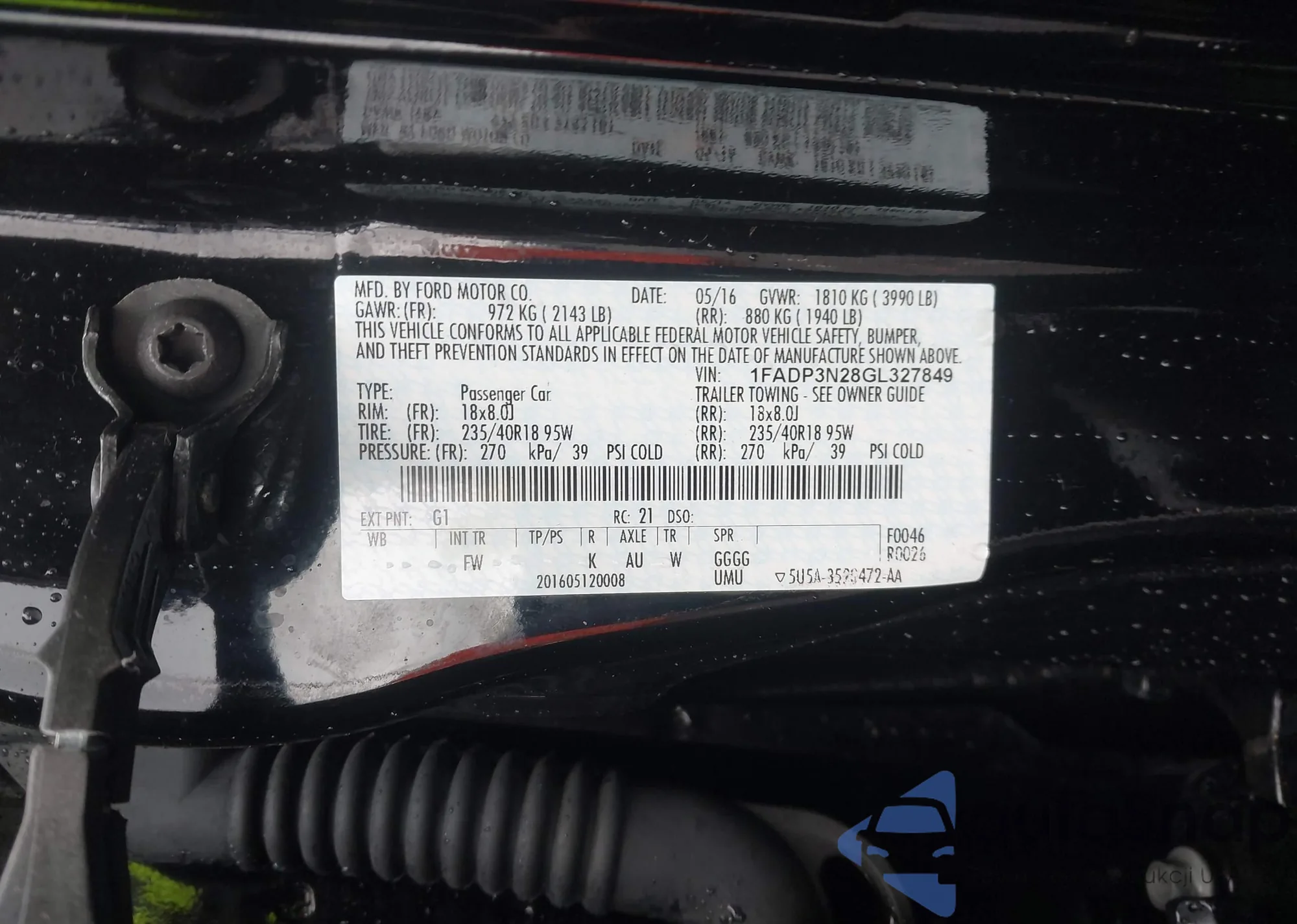 • VIN 1FADP3N28GL327849