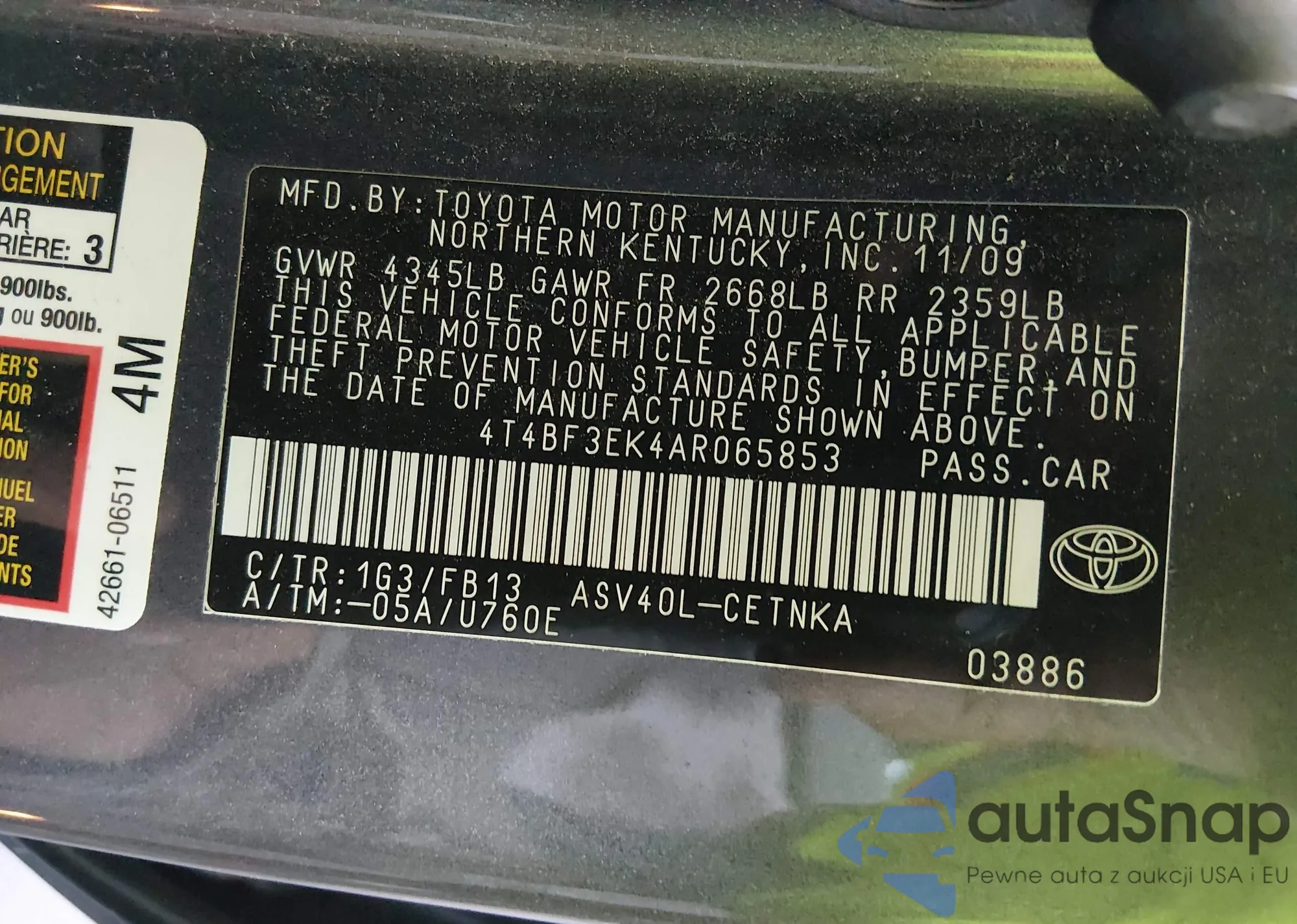 • VIN 4T4BF3EK4AR065853