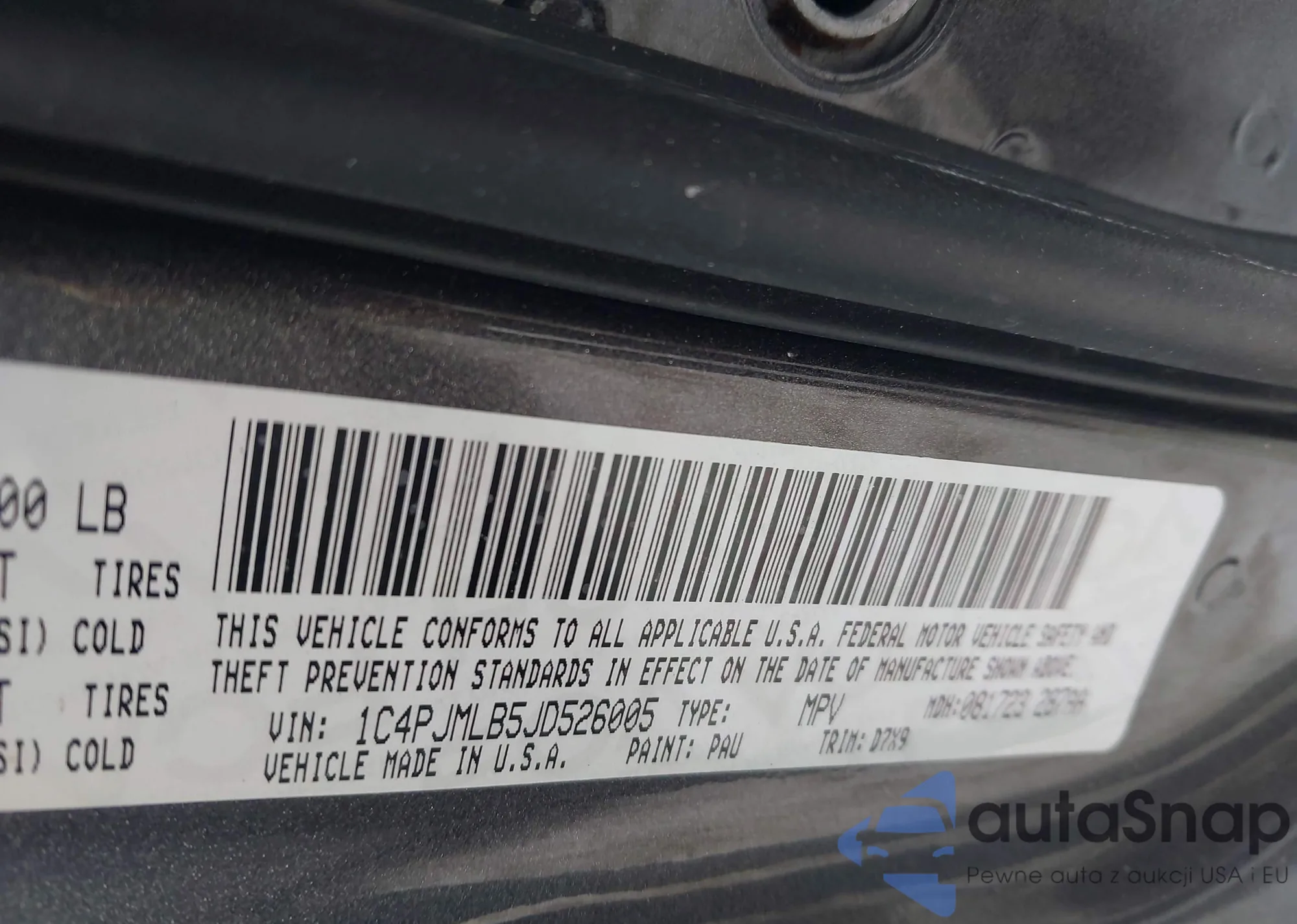 • VIN 1C4PJMLB5JD526005