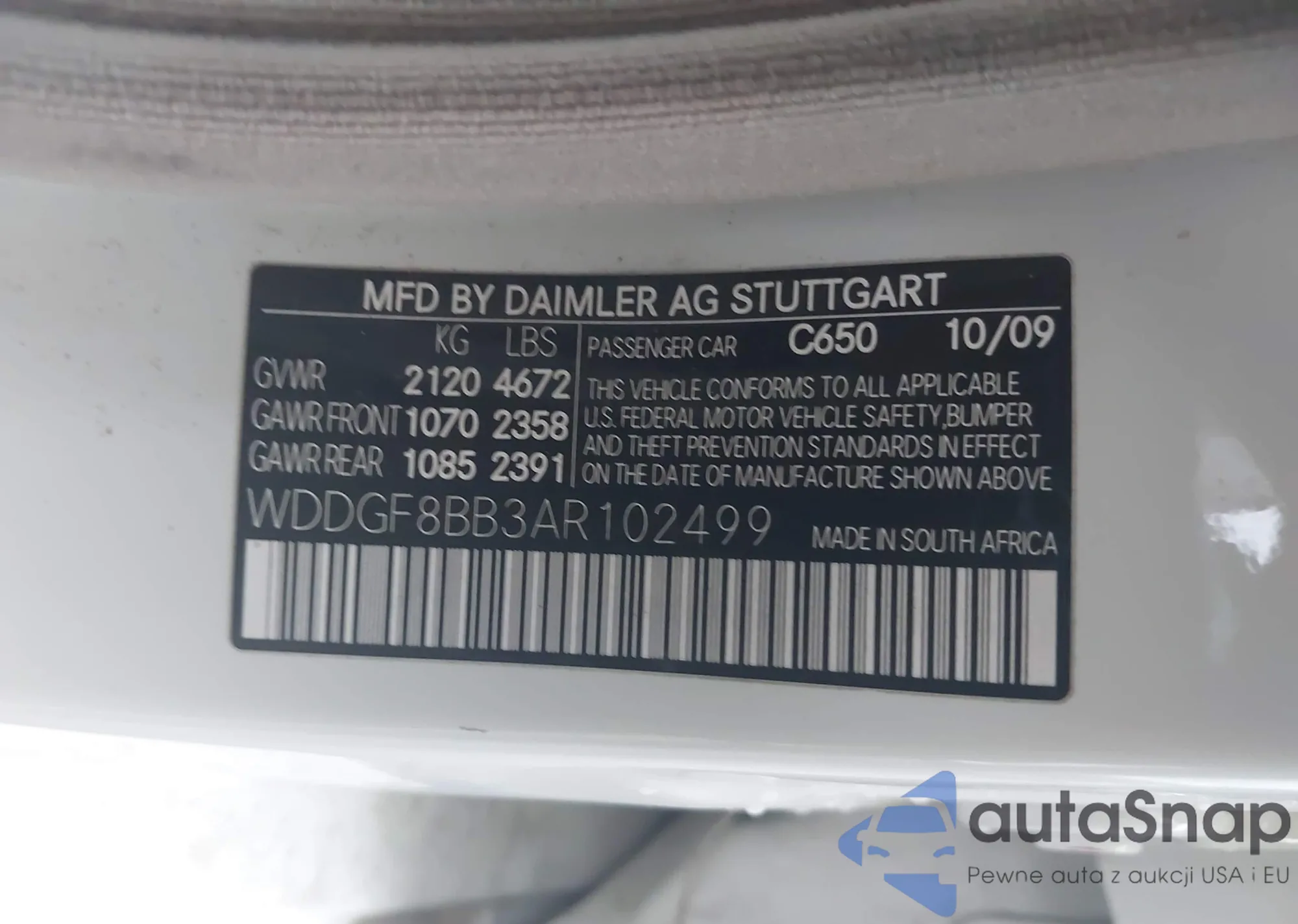 LOT: 43970298 VIN: WDDGF8BB3AR102499