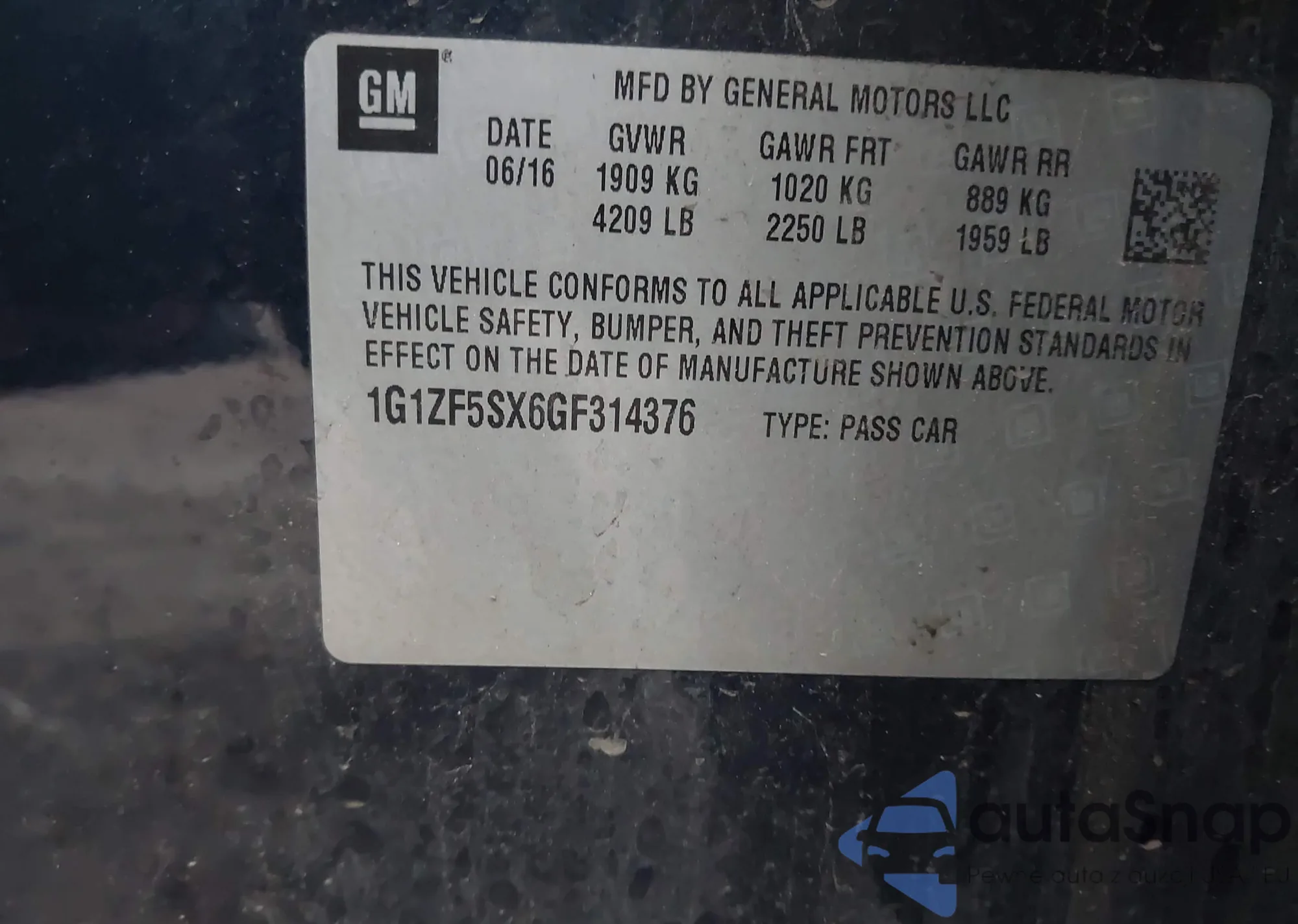 • VIN 1G1ZF5SX6GF314376