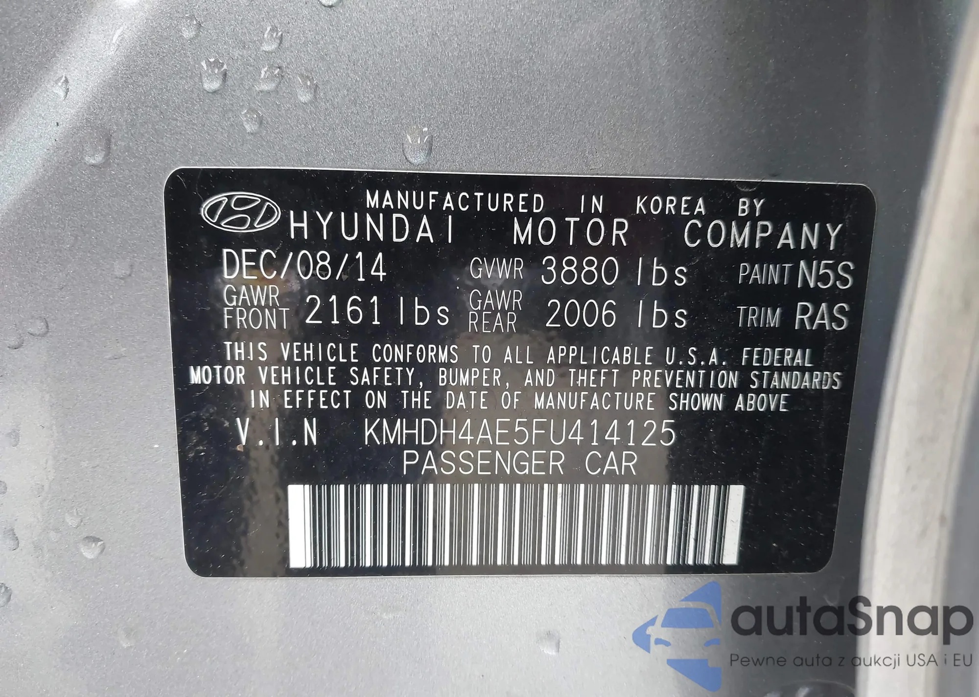LOT: 43855913 VIN: KMHDH4AE5FU414125