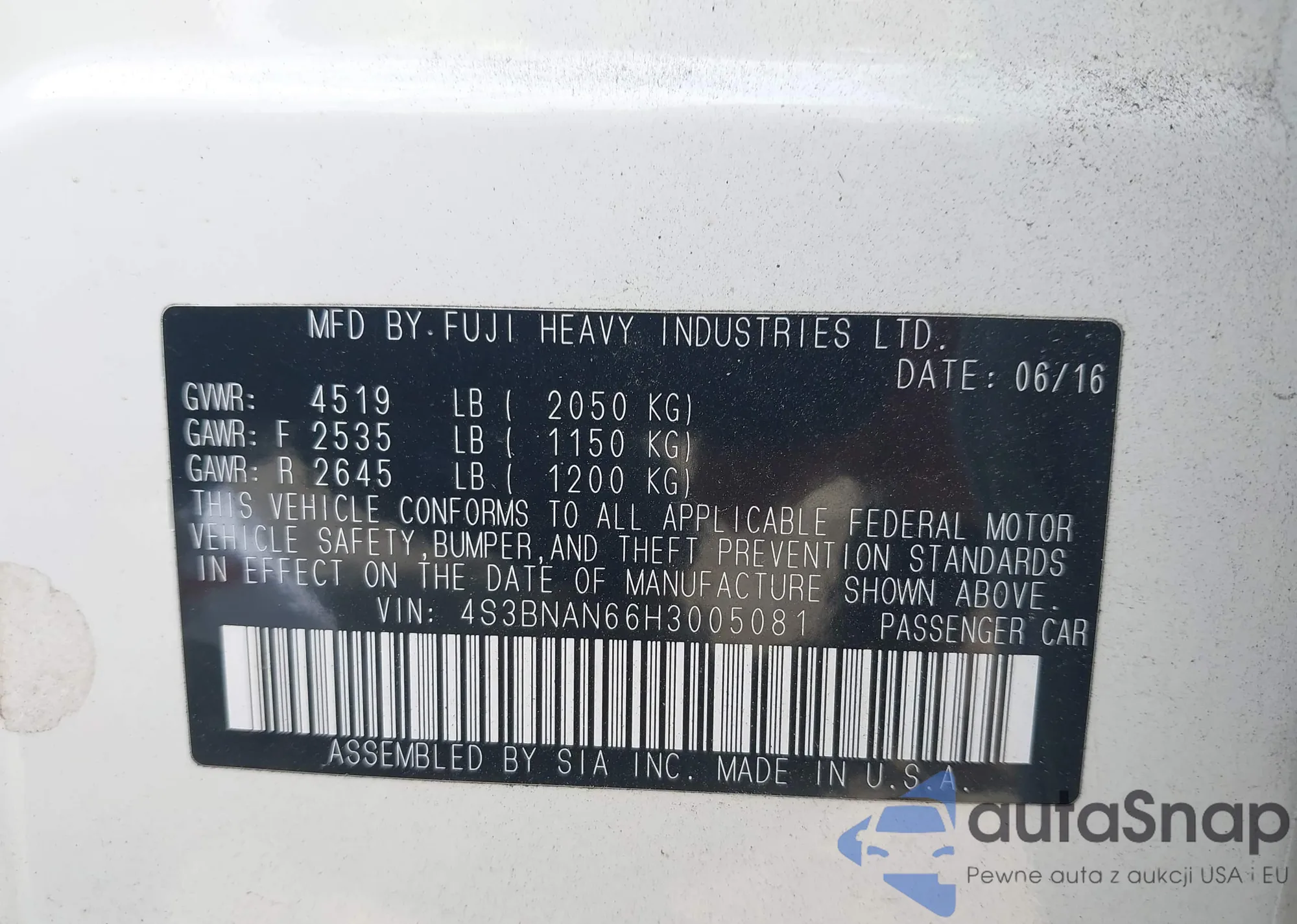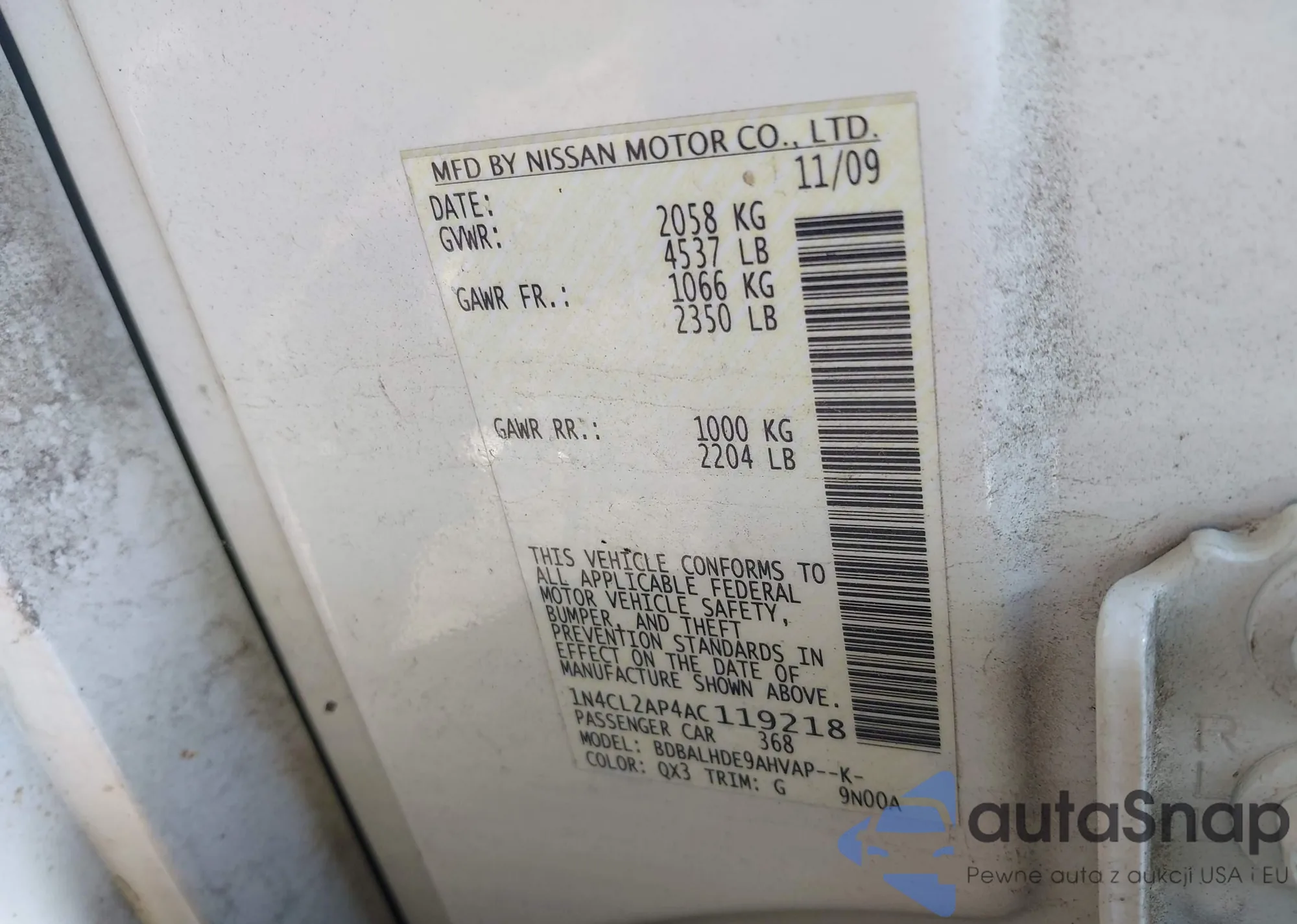 LOT: 43952096 VIN: 1HGCP2E38AA124702