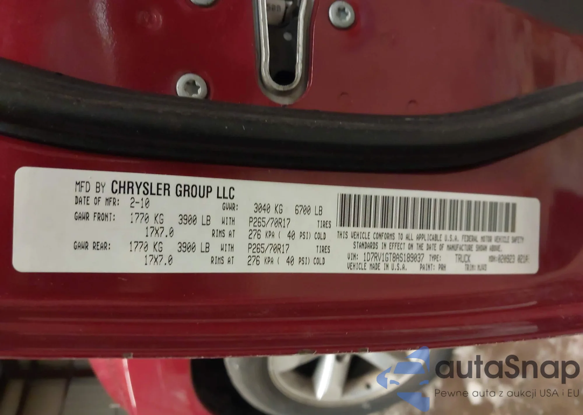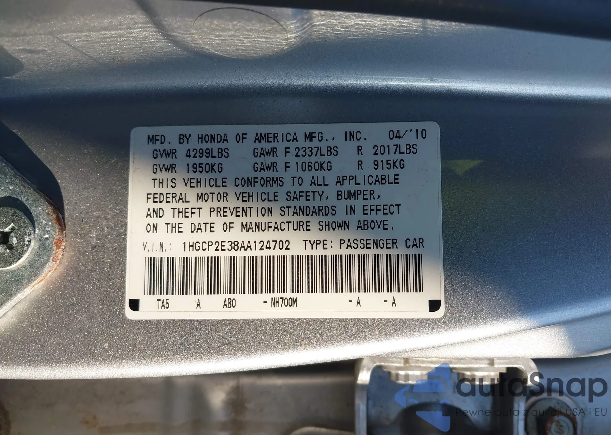 • VIN 1HGCP2E38AA124702