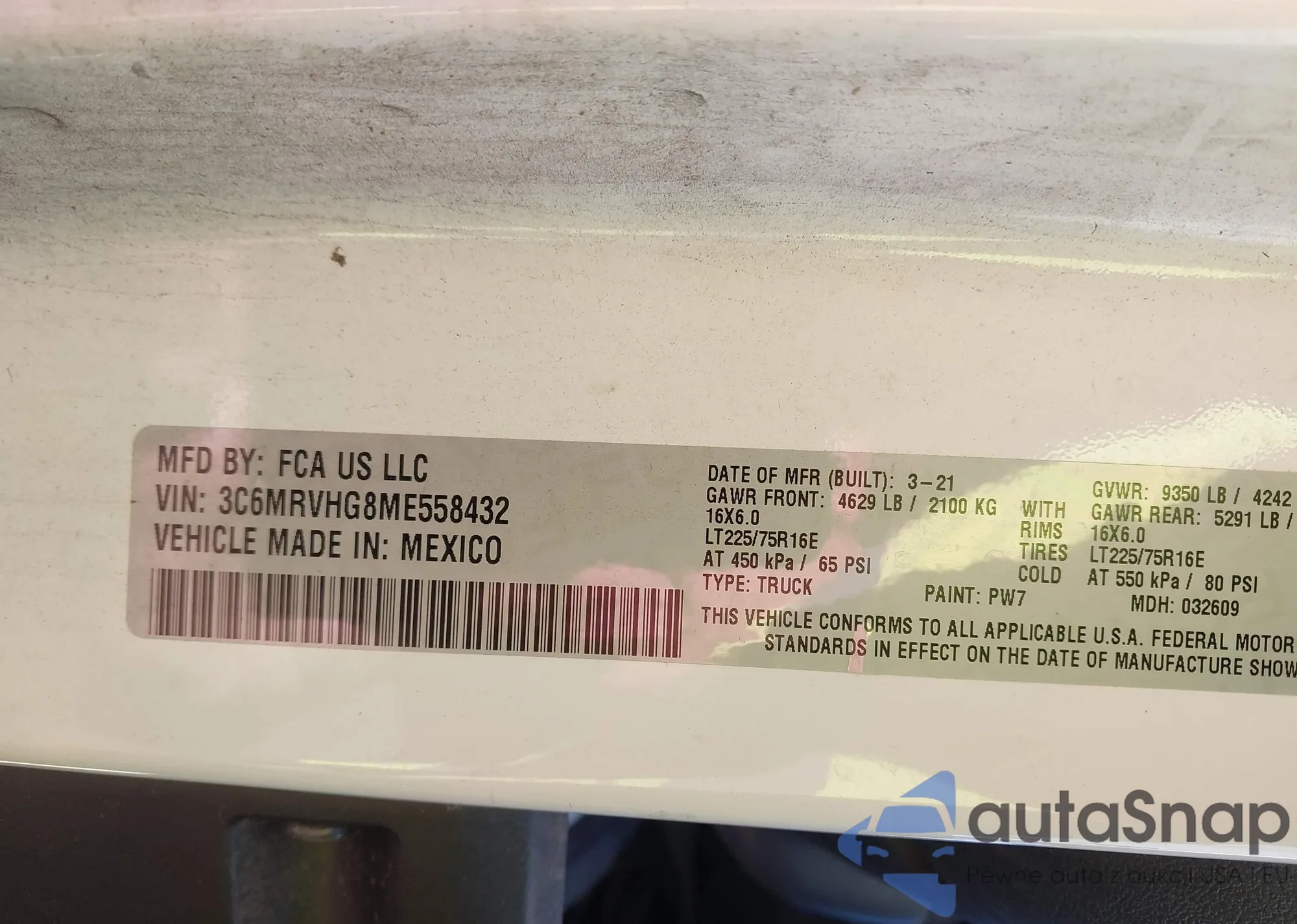 • VIN 3C6MRVHG8ME558432
