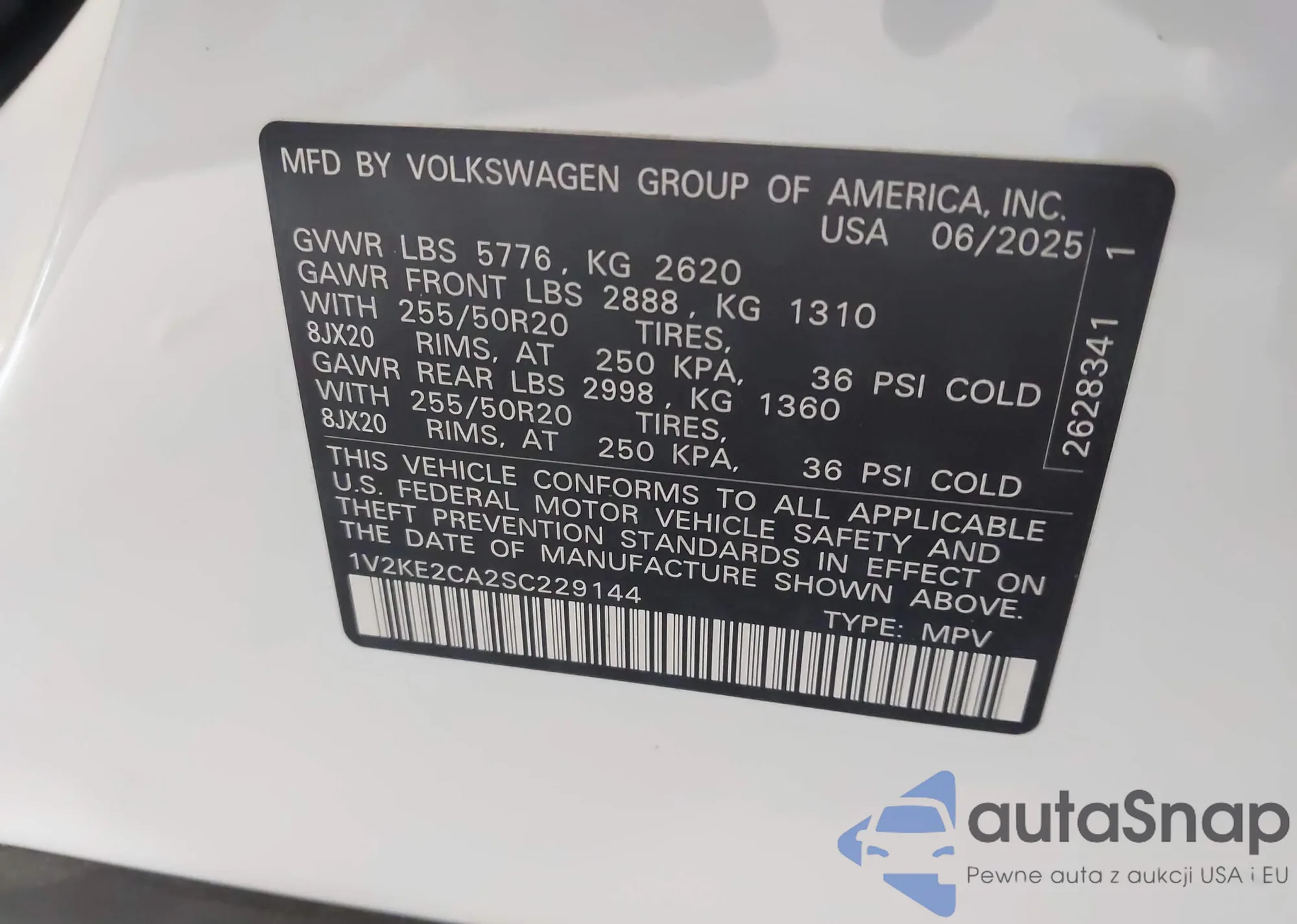 LOT: 43975712 VIN: 1V2KE2CA2SC229144