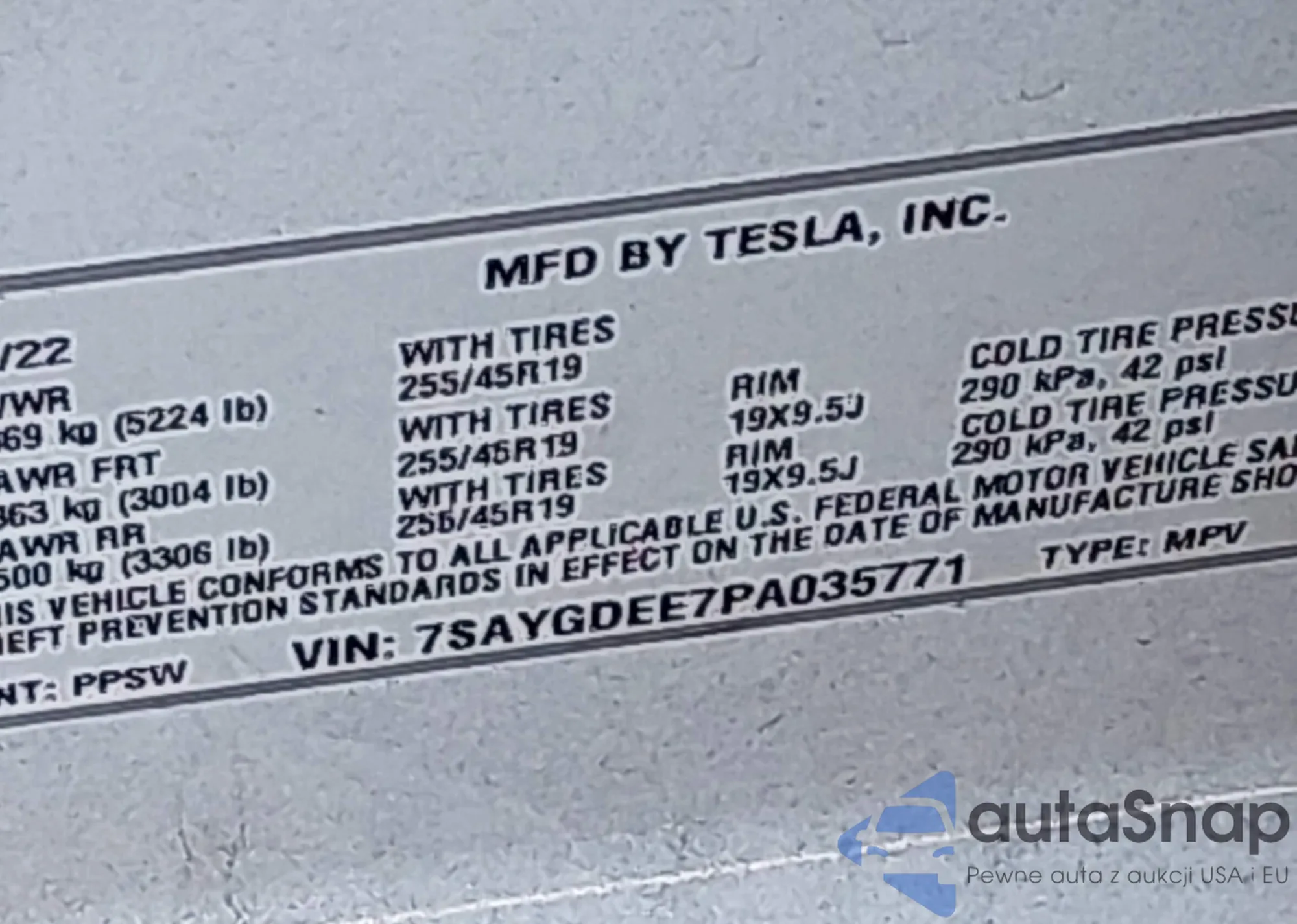 • VIN 7SAYGDEE7PA035771