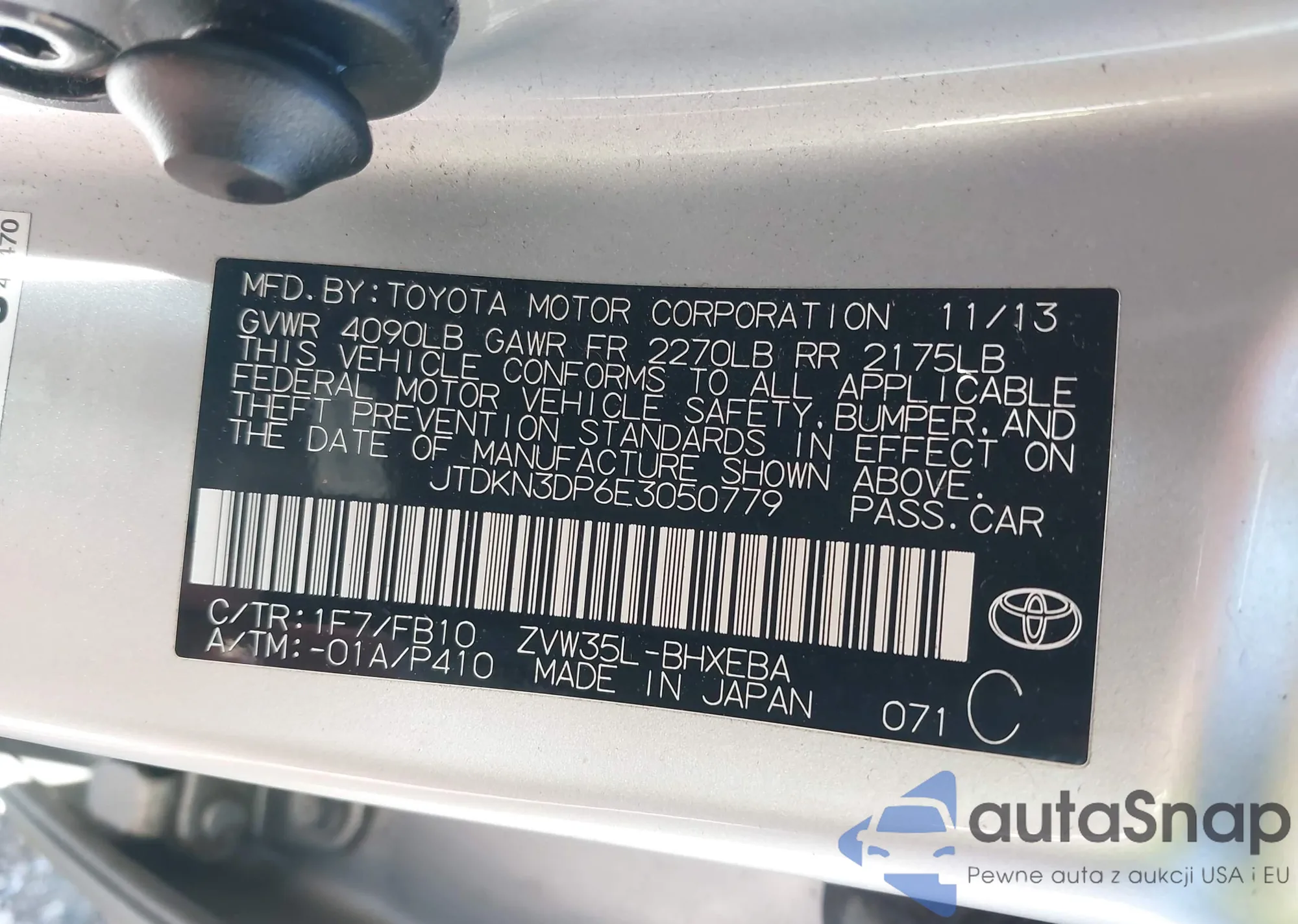 LOT: 43489999 VIN: JTDKN3DP6E3050779