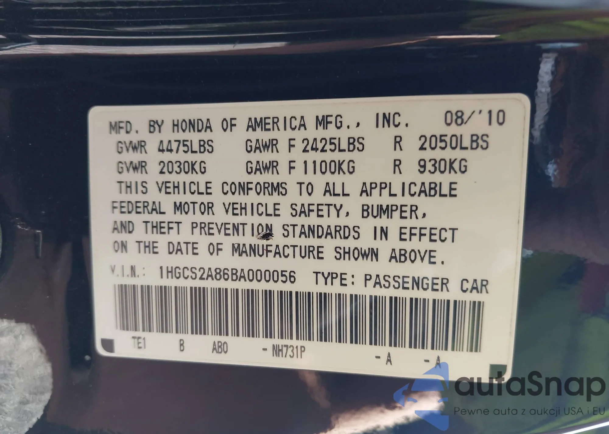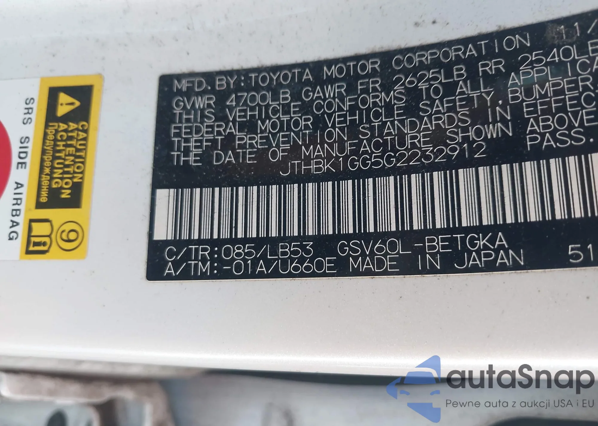 • VIN 4T1BD1FK5CU004937