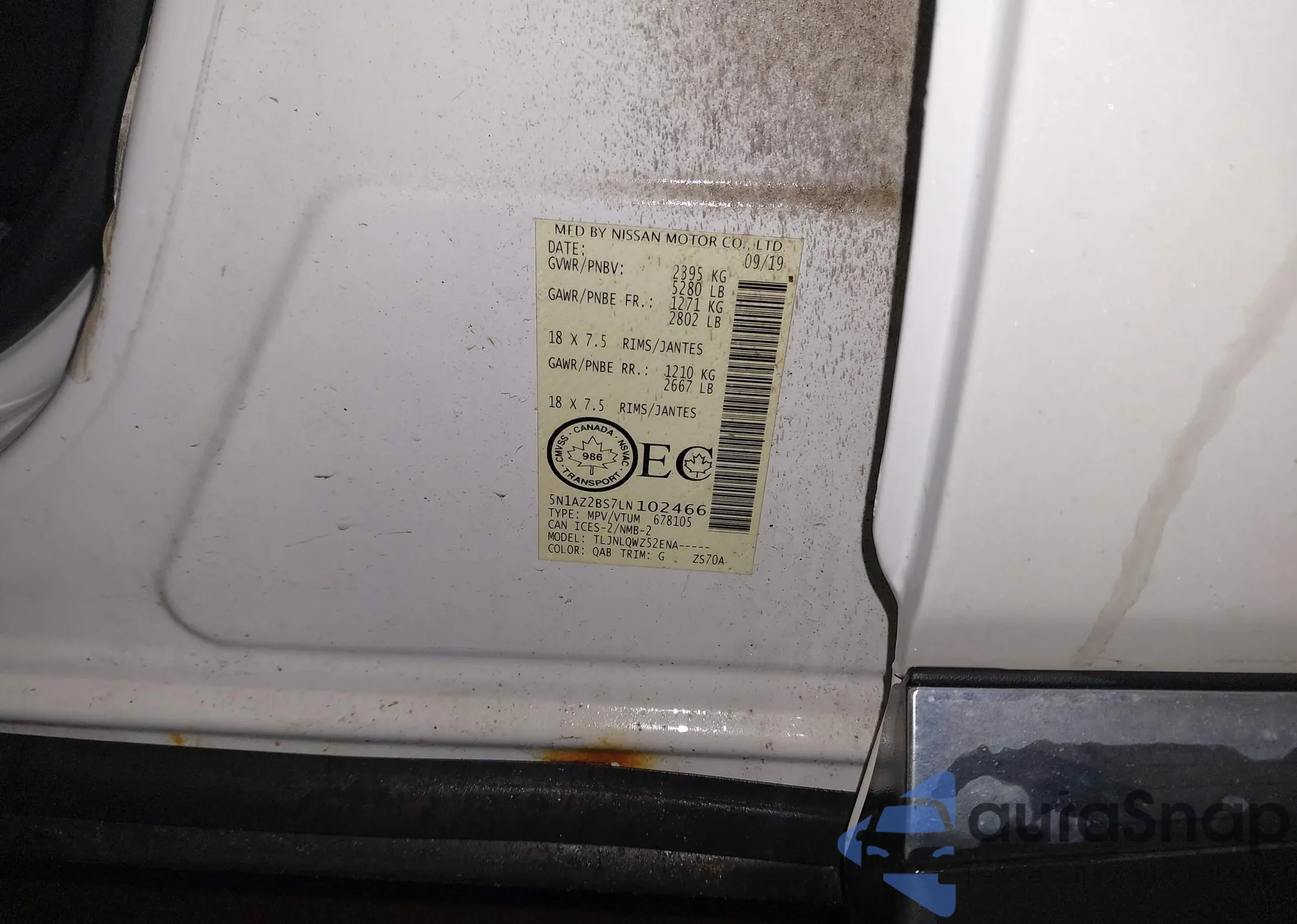 • VIN 5N1AZ2BS7LN102466