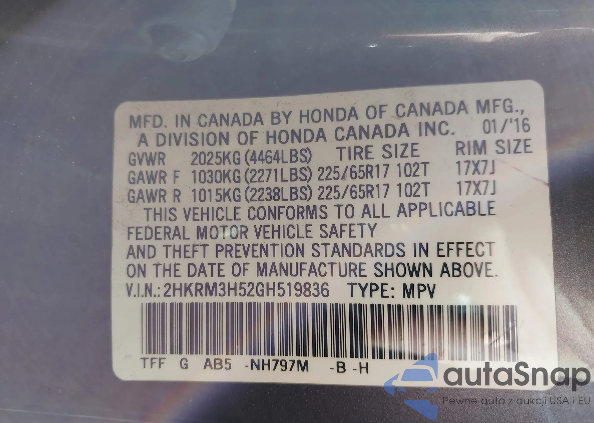 • VIN 4T3MWRFV8NU055855