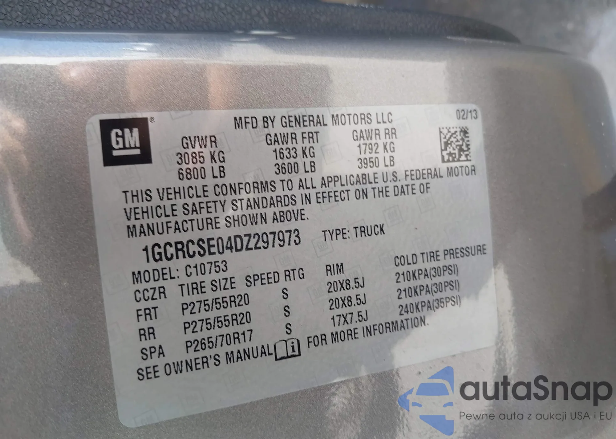 • VIN 1GCRCSE04DZ297973